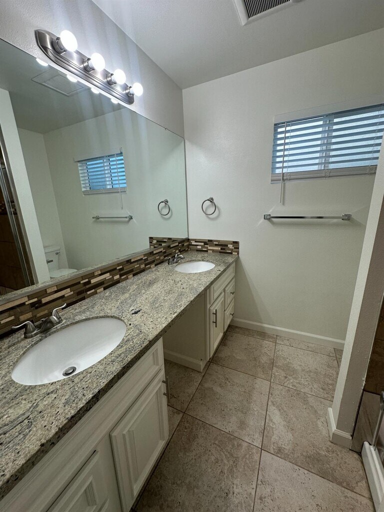 Completely updated 3/2 home with nearly 1,700 sq. ft. of living space! This home has been totally upgraded - new paint, new floors, new fixtures, updated bathrooms and more! Open and functional floor plan, spacious backyard with a covered patio, ceiling fans in each bedroom and a large primary suite with an en-suite bathroom and huge closet. Extra storage in the laundry room (located inside) and a two car garage with automatic opener. Move in ready! Renter's insurance is required.