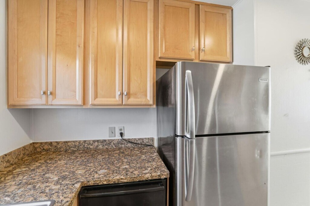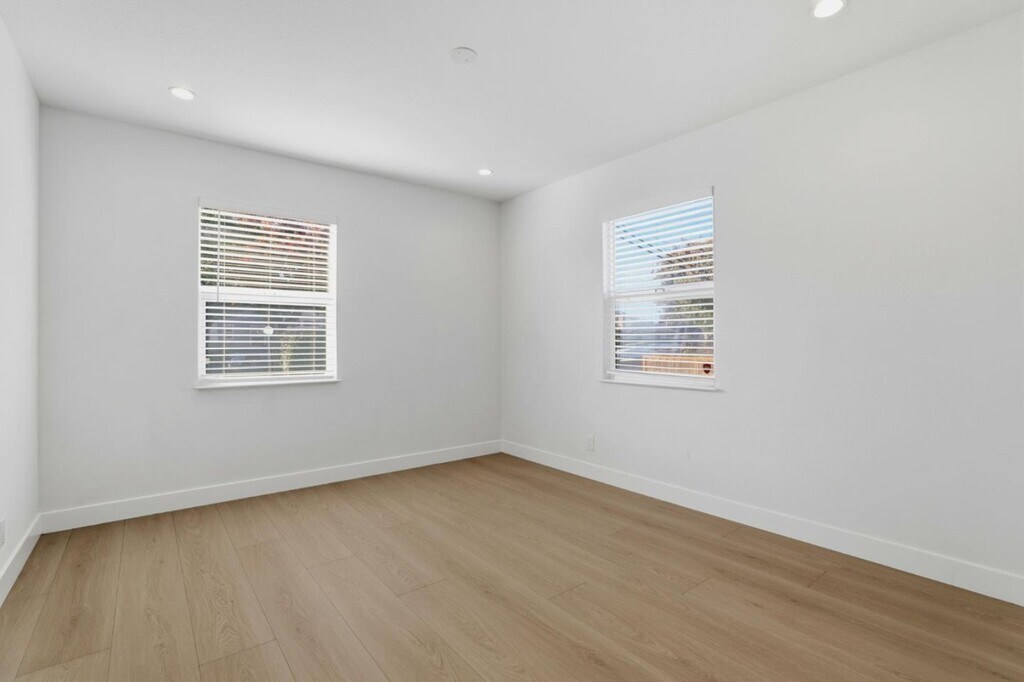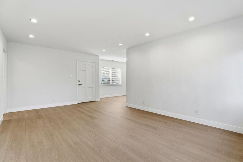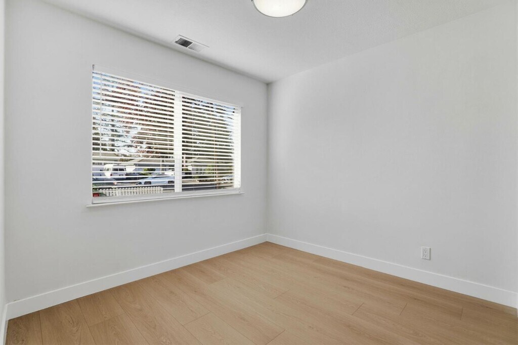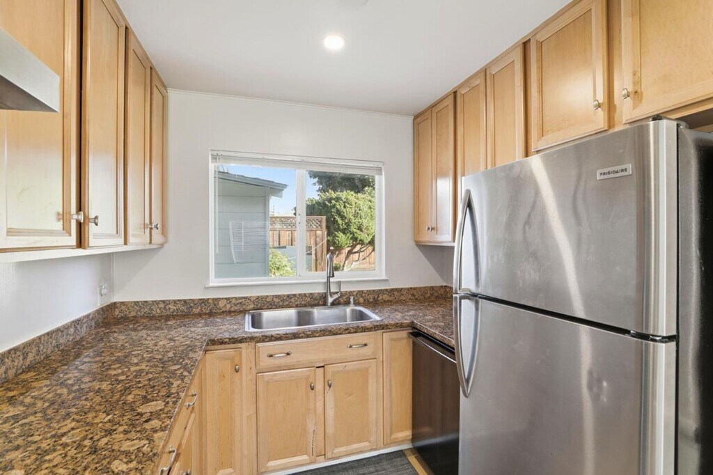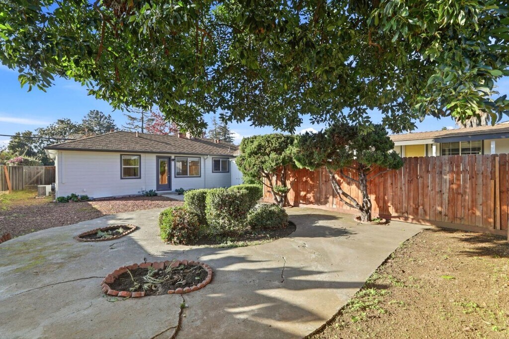 This freshly updated single-level home offers a rare blend of clean modern interiors, functional layout, and generous private outdoor space in a convenient esidential neighborhood. The interior features SPC flooring, recessed lighting, fresh white walls, and excellent natural light. The cozy living and dining areas flow easily into the kitchen, creating a comfortable everyday living space that feels open but not oversized. The kitchen is well-appointed with solid wood cabinetry, granite countertops, gas range, stainless refrigerator, and ample storage, with a window overlooking the backyard for natural light and ventilation. Bedrooms are bright and well-proportioned, suitable for resting, working from home, or guest use. The updated bathroom features a vanity, glass-enclosed shower with designer tile, and clean contemporary finishes.Outside, enjoy a large, fully fenced private yard with mature trees, patio areas, and multiple zones for relaxing, gardening, or outdoor dining. A covered carport driveway provides convenient off-street parking, and a dedicated laundry/storage structure with stacked washer and dryer adds everyday practicality. MLS # ML82031104