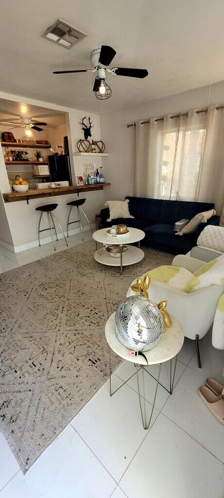 This large 1/1 comes fully furnished in the heart of Flagler village, walking distance to all the great attractions. Tile floors, open kitchen with a walk up bar as well as all the kitchen utensils ready for your move in. The shared lush back yard has a Bali feel for a great bbq gathering space. Laundry on premises and owner pays utilities for an additional $350/mo (water, trash/sewer, wifi and electricity. Great space for dog owners.