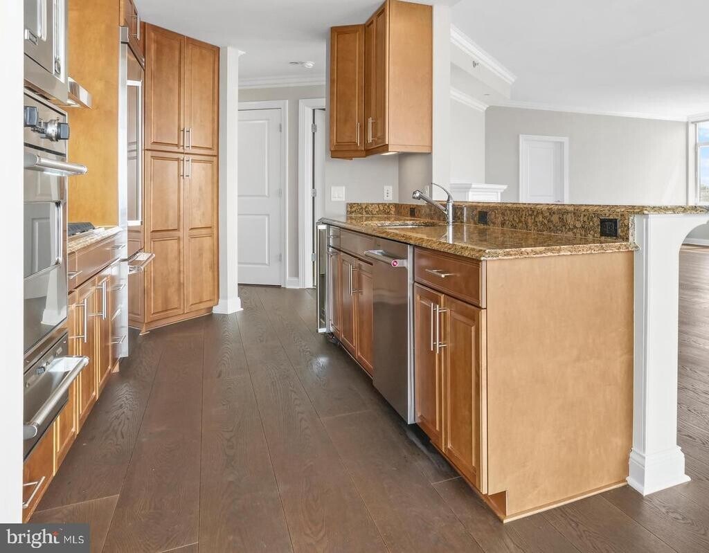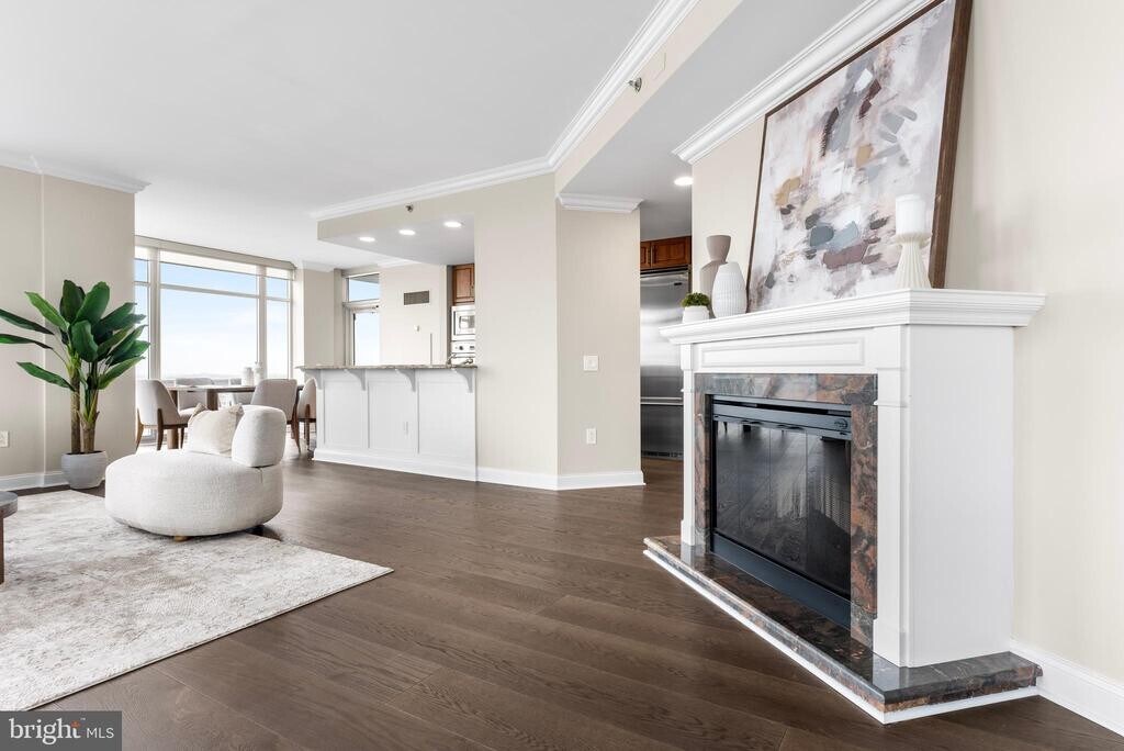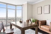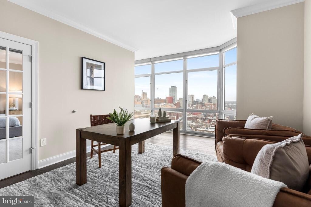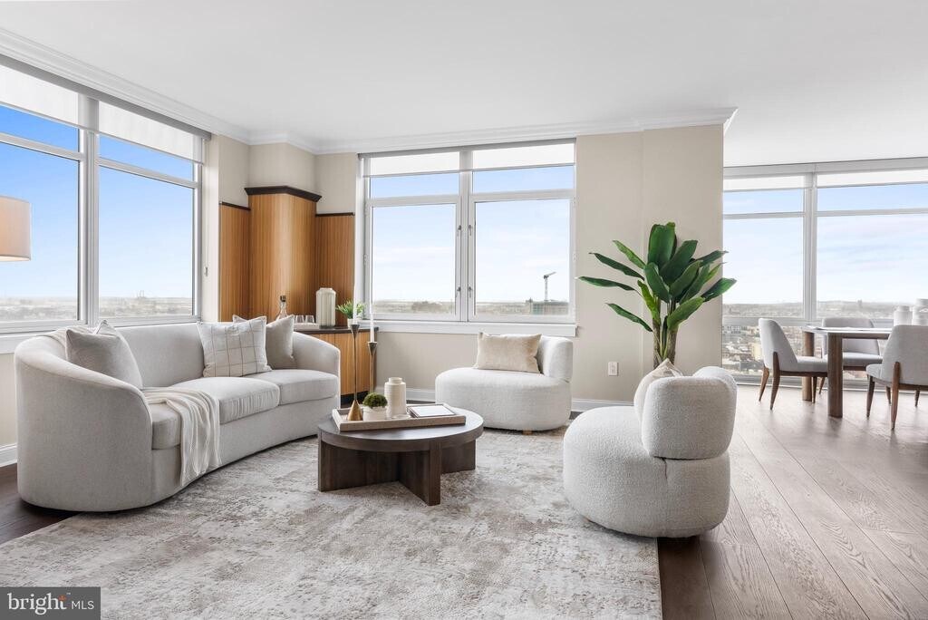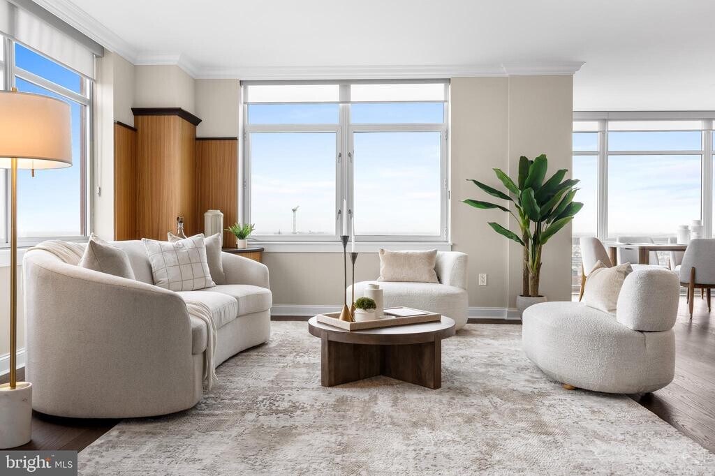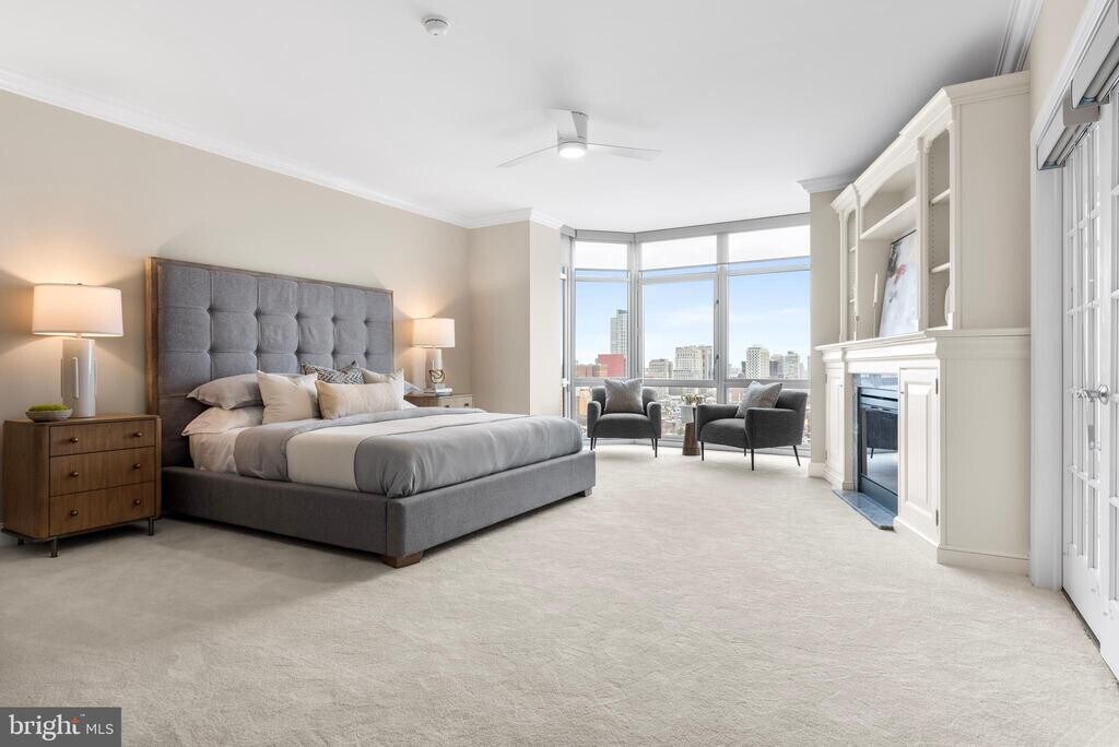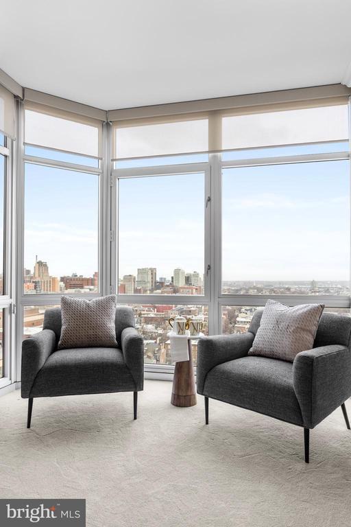 There is only one Suite 1808 and it is extraordinary. And now available for an immediate lease! Commanding the 18th floor of the southeast corner of famed Symphony House, this sprawling 2,395 s.f. Mozart Luxury Suite is ideal for the discerning urban dweller who refuses to sacrifice beauty to functionality. The smart open-concept floor plan is expansive, boasting 270 degree panoramic river, bridge, and Avenue vistas. Gorgeous wide-plank hardwood floors, electronic shades, architectural crown molding, and custom-built focal features elevate the main live space. Unique in many ways and one of only a rare three at Symphony House, the Mozart Luxury Suite's layout offers tremendous versatility. Adjacent to the main live space in this expanded corner floor plan, a beautiful light-filled room with floor to ceiling windows overlooking the Avenue and unimpeded tree-lined views to the river. Whether third bedroom, home office, den, cool quarters for overnight little ones, or a seamless continuation of flow for entertaining, this beautiful room has endless possibilities. An expertly-fitted urban galley kitchen features granite countertops, Viking professional stainless appliances, custom cabinetry, and wine chiller. The dine space is flanked by floor to ceiling windows framing spectacular city and sunset views. Step outside to a private sunlit balcony to enjoy a morning coffee or midnight glass of wine. A key attribute of this very desirable layout is the privacy of each bedroom suite. A zen haven unto itself, the primary suite is a quiet oasis of luxury with bright, eastern-facing floor to ceiling windows anchoring this magnificent space. Two oversized walk-in closets, a cozy sitting area, and focal fireplace with built-in shelving highlight the suite. An elegant white marble bath boasts dual vanity, a soak tub, and double-wide glass-enclosed shower. This primary suite is a simply spectacular sanctuary, offered exclusively in the Mozart. At the opposite wing of the residence, the perfect guest suite replete with walk-in closet, linen, and lovely en-suite marble bath. A modern half bath with custom wallpaper completes this stunning residence. Freshly painted a neutral revere pewter, new bedroom carpeting, completely move-in ready. There is only one Suite 1808. And it is extraordinary. Two garage spaces in the building's private garage and two storage lockers are included with the residence. Offering unparalleled services and amenities, prestigious Symphony House is the city's premier Avenue of the Arts address boasting 24/7 concierge and doorman, 65' heated indoor lap pool, steam and sauna, state-of-the-art fitness center, bike share, beautiful outdoor terraces, library, clubroom, dining salons, wine cellar and chef's catering facility. Stellar location, ideally situated amid the city's vibrant theatre district, steps from the finest restaurants, boutique shopping, recreation, major travel routes, the dynamic city lifestyle at your front door. A hallmark destination, Symphony House continues to enjoy incredible stability, and its well-earned status as one of the most prestigious buildings in the city. A rare gem on the Avenue.