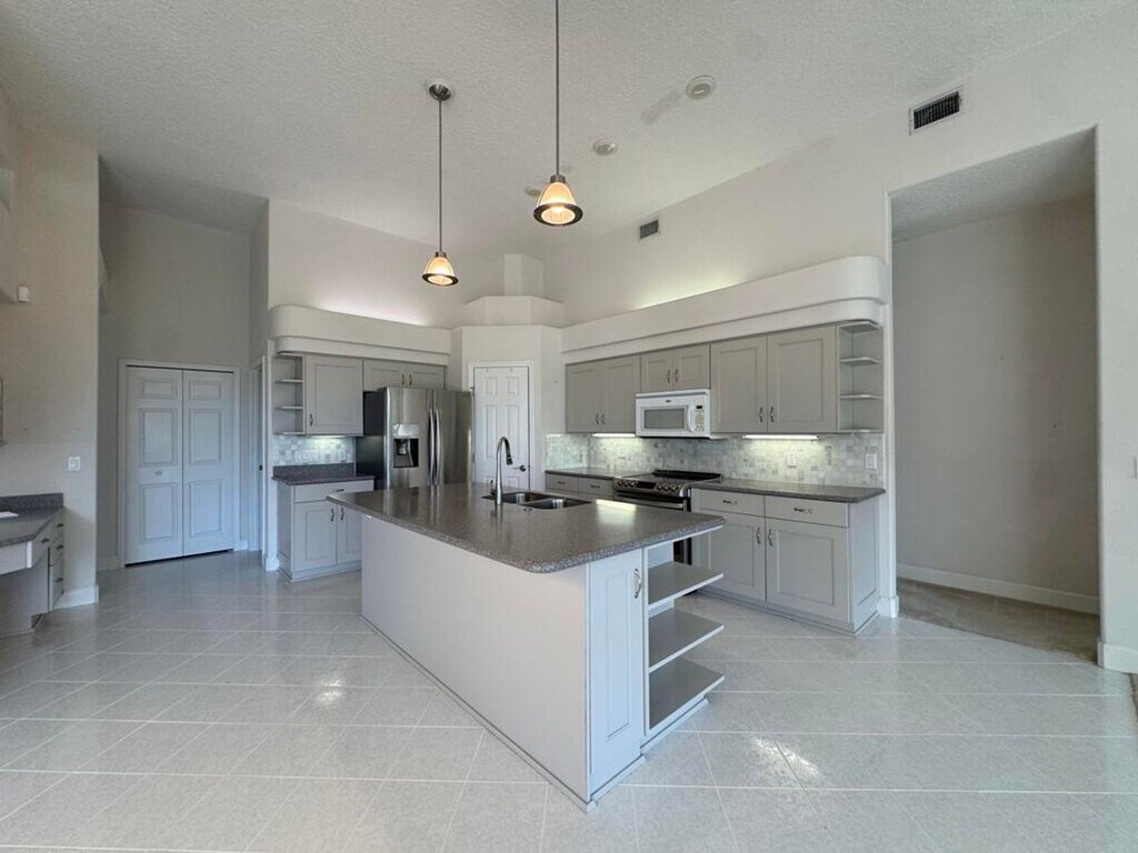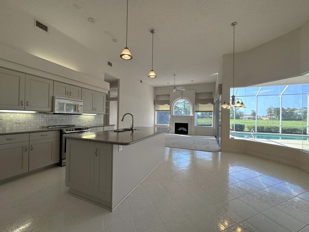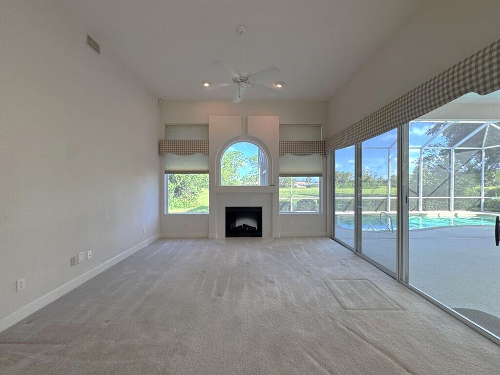 This 4 bedroom, 3 bathroom pool home is in the gated community of Pelican Bay. This home features over 2600 sq ft of living space with a split floor plan. As you enter into the formal living and dining area, you will first notice the screen enclosed pool through the large windows. The spacious primary bedroom is located off the hall to the right and has a large ensuite bathroom and private access to the lanai. The ensuite bathroom features your large walk in closet and a separate tub and shower. There is also a guest bedroom with built in desk and murphy bed on the other side of the hall, along with a full bathroom. The updated kitchen is situated in the middle of the home with a large island, Corian countertops and opens up to a family room with a fireplace and breakfast nook with views of the pool. The hall off the kitchen is where you will find the other 2 bedrooms and 3rd bathroom. The large lanai and screened in pool are great for relaxing or entertaining. Pelican Bay is conveniently located close to I-95 and I-4 for those who might travel for work. *Renters Insurance Required Call Becky to schedule a showing. Office- After Hours and Weekends-