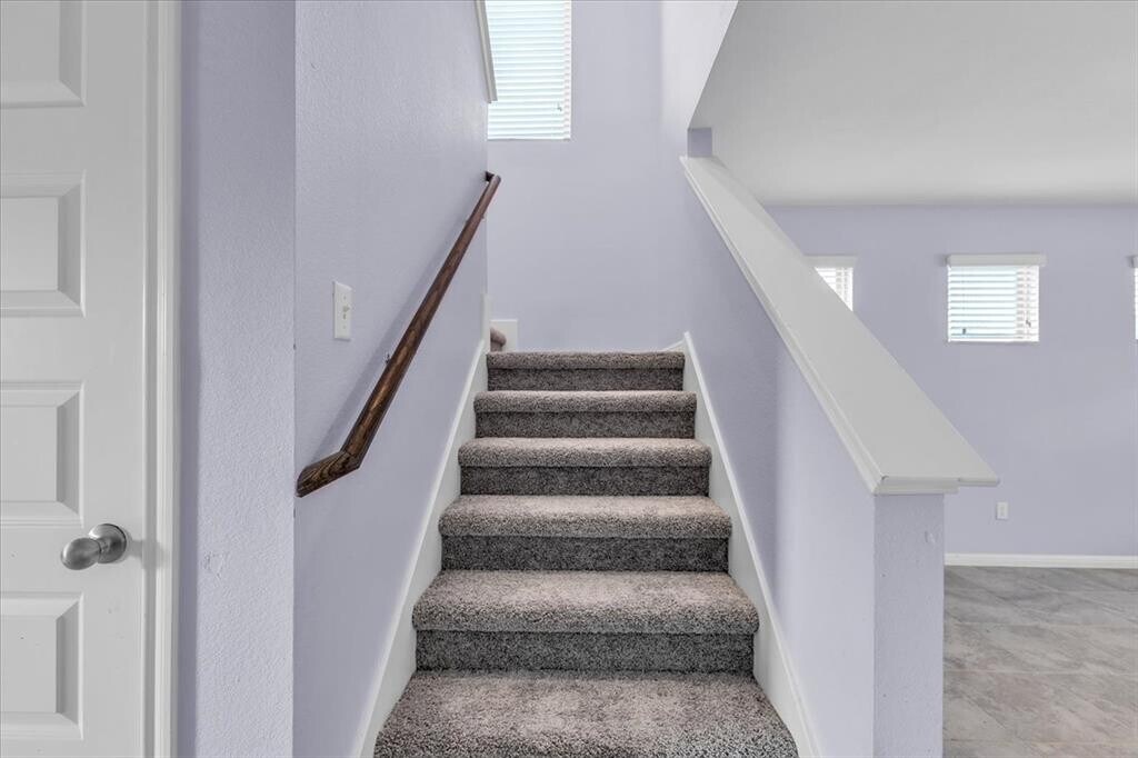 Enjoy life in Leander with this well-designed Pacesetter home, offering 3 bedrooms, 2.5 baths, and a detached car garage with alley access. All bedrooms are upstairs, including the primary suite with an attached bath. The kitchen features a central island and opens to the dining and living areas, making it easy to cook while connecting with family and friends. A full-size washer and dryer (in a dedicated closet off the downstairs bath) will convey, along with the refrigerator, water softener, and security cameras for both the house and garage. This home also includes a private side yard, perfect for pets, play, or practicing your golf swing. Residents enjoy access to 14.9 acres of trails, a community pool, pavilion, and playgrounds. Conveniently located near Toll 183, Capital Metro rail and bus stations, H-E-B, and local shops and services, with future growth from the upcoming Leander Northline Project and St. David’s Hospital nearby.