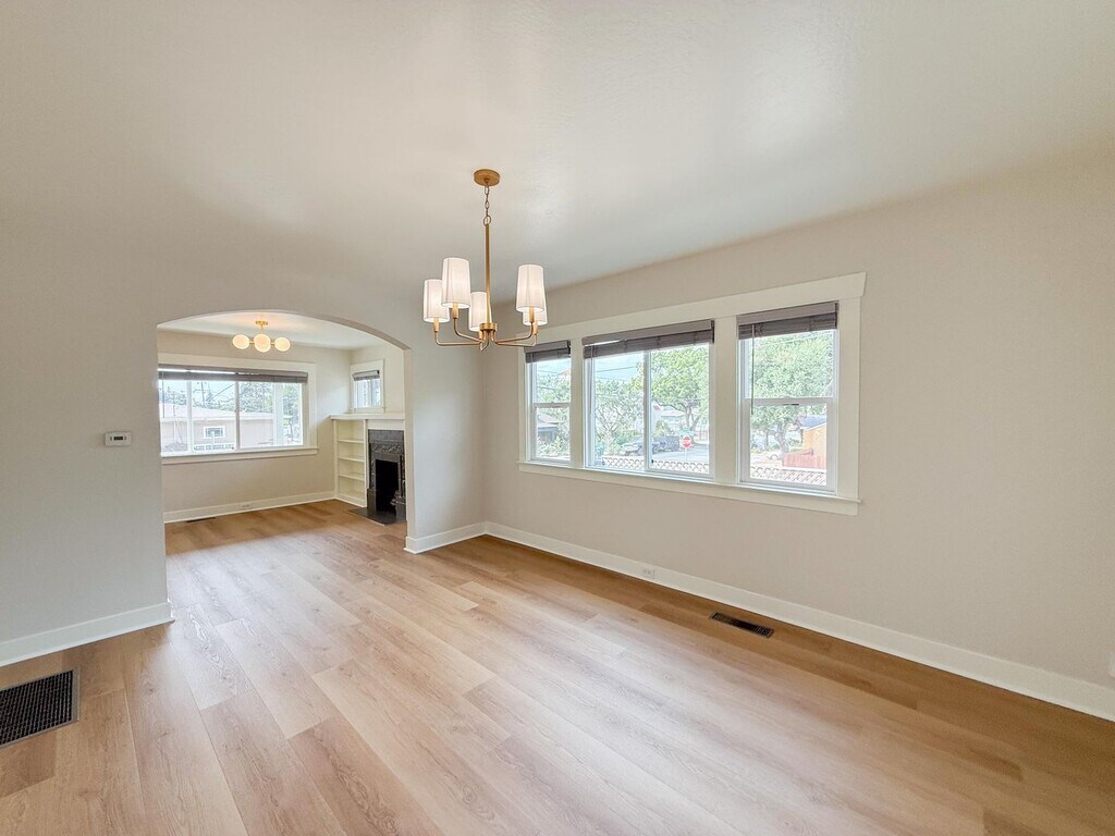 Light and Bright home in Maxwell Park has been recently renovated all throughout while retaining the original character of the original home including a formal living room and dining room. Updated features include dual-pane windows, luxury vinyl tile flooring, s new light fixtures throughout, fresh interior/exterior paint, LED lighting and much more. The new renovated kitchen and breakfast nook includes new SS appliances, a subway tile backsplash over quartz counters, and white shaker cabinets. There is also a full size side by side washer and dryer. Close to Laurel shipping district, nearby parks including Redwood Regional Park and Leona Canyon, Grand Lake, BART, and freeways.
