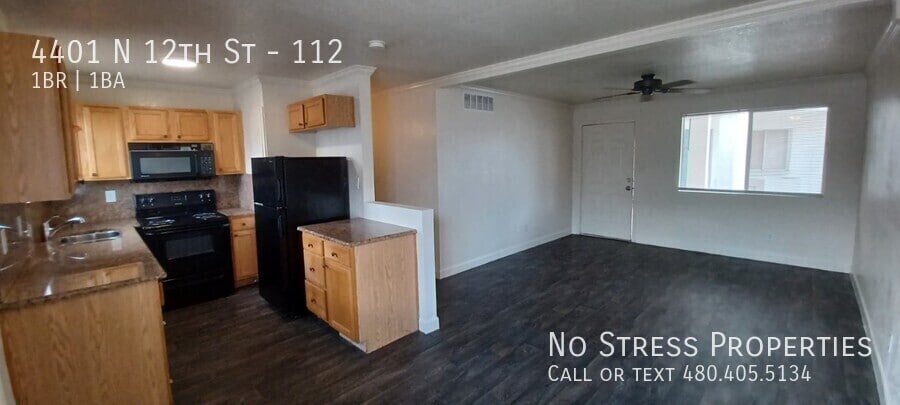 Welcome to your new home! Nestled between downtown, Central and Camelback corridors; you are just blocks from the SR51, shopping and restaurants at 16th St/Camelback and the Biltmore areas and just minutes to downtown and the airport. This 1 bed 1 bath ground level condo features wood-like sheet vinyl floors throughout, lots of cabinetry, a pantry, granite counter-tops, 6 panel doors, a tiled shower and wall mounted AC units in both the living room and in the bedroom! The unit is conveniently located near the pool. Appliances Included: Fridge, Stove/Oven, Dishwasher, Microwave (onsite paid laundry) The resident is responsible for the following utilities: Electric: APS Pets: Only dogs and cats are considered pets for this purpose. You cannot have more than two pets and the adult full-grown weight cannot exceed 25lbs. If you have a pet, there is a one-time pet fee of $100.00 per pet and a monthly pet rent of $10.00 per pet per month. Parking: The covered parking spaces are currently unassigned. Income Requirement: Must make at least $2,112.50 or greater per month (after taxes) Renter’s Insurance Requirement: Liability Coverage of not less than $250,000. Move-In Costs 1st Month's Rent: $845.00 (any prorations are due the following month if applicable) Security Deposit: $845.00 Cleaning Fee: $175.00 Pet Fee (if applicable): $100.00 per pet Total Move-In (not including pet fees if applicable): $1,865.00 ****STEPS TO SCHEDULE AN IN PERSON TOUR**** 1. Select a showing time above. For additional information including application requirements, please review our . We look forward to meeting you!