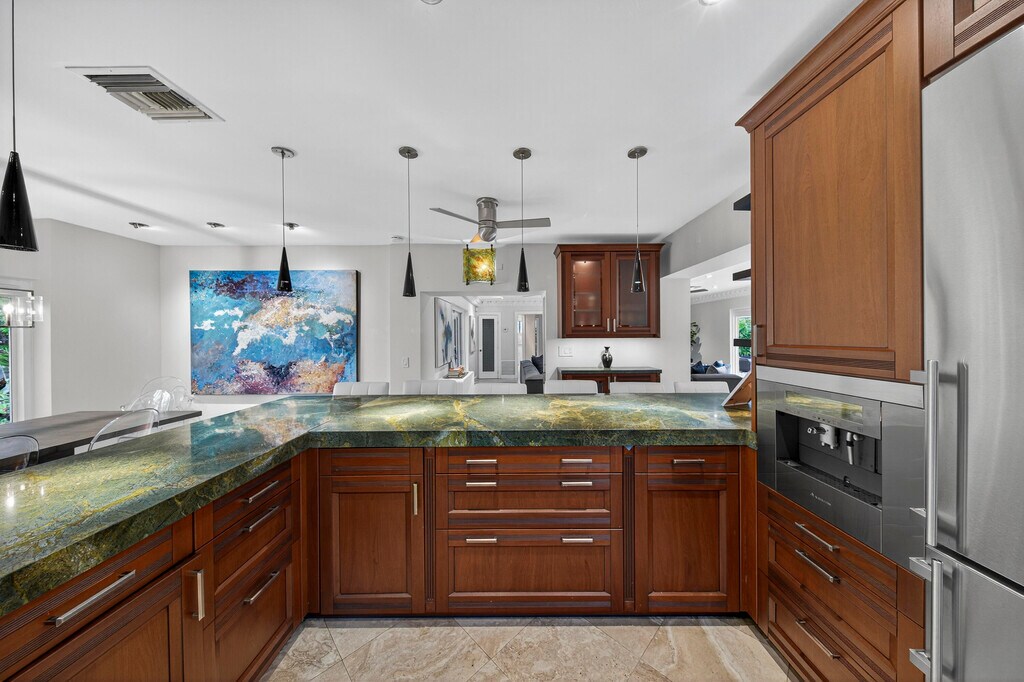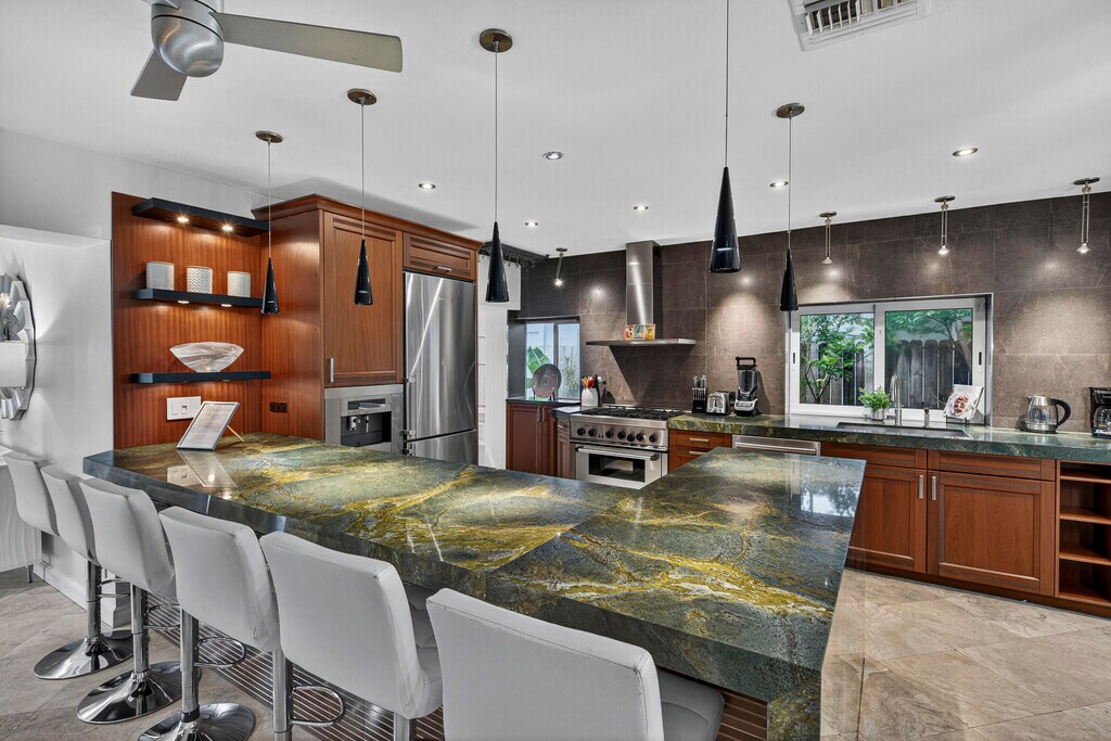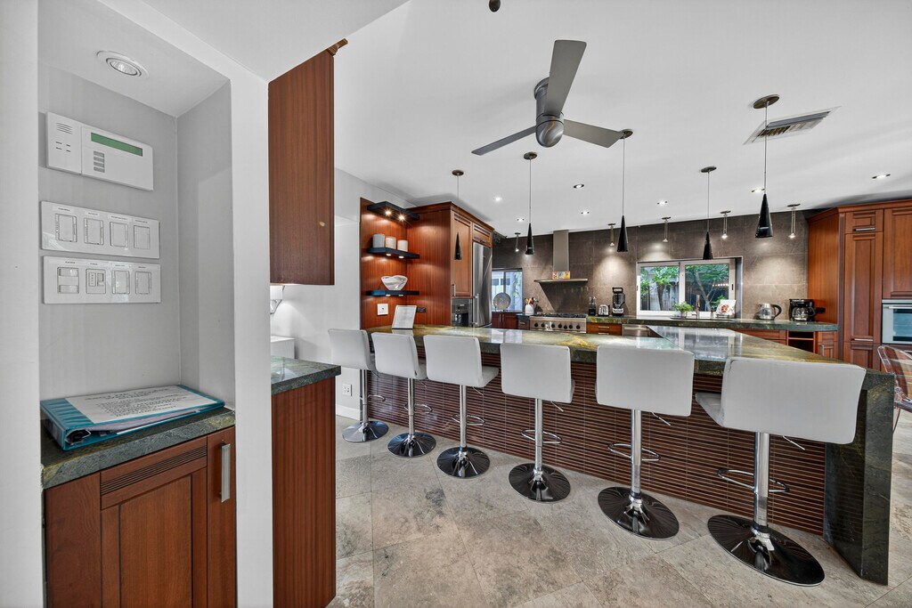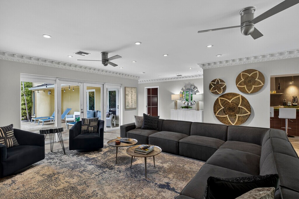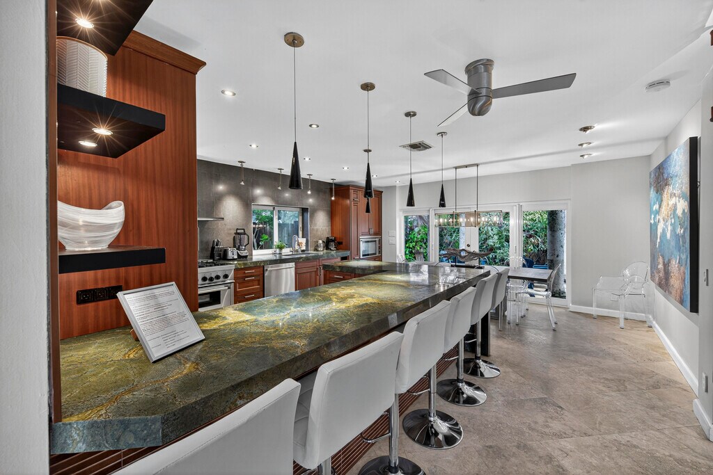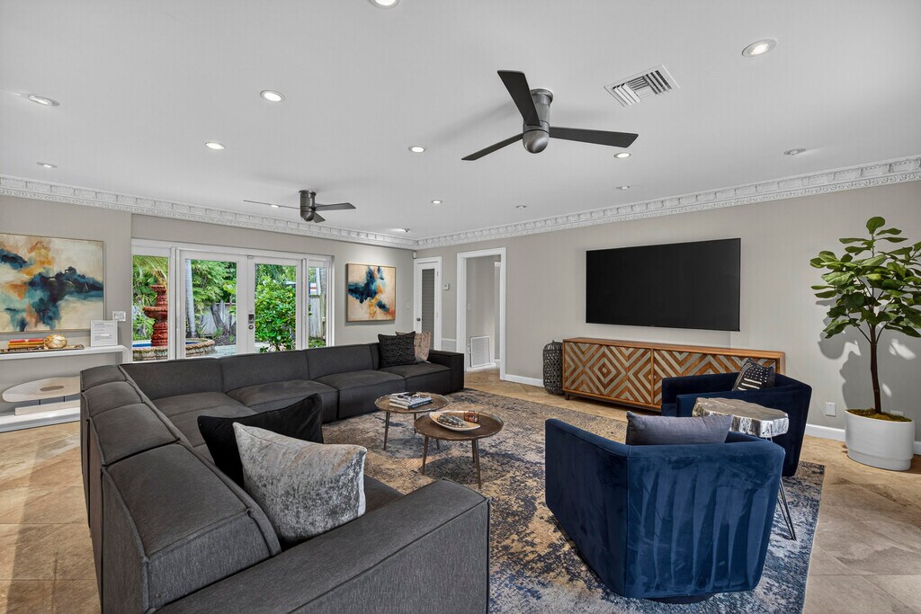 Discover this tropical paradise hidden gem in the heart of Fort Lauderdale. This stylish 4 bedroom, 2 bathroom furnished home features bright, open living spaces, gourmet chef's kitchen, built in closets, and modern finishes. Both bathrooms include walk-in, roll-in showers for comfort, accessibility and a touch of spa like luxury. Enjoy an expansive backyard oasis with sparkling, heated pool, hot tub and extensive outdoor seating, ideal for sun soaked afternoons, evening cocktails or dining under the stars. The front boasts a lush tropical patio with beautiful fountain, creating a serene welcome as well as a wonderful setting for morning coffee or peaceful relaxation. Located minutes from beaches, boating, dining and nightlife, this one captures the best of South Florida living.