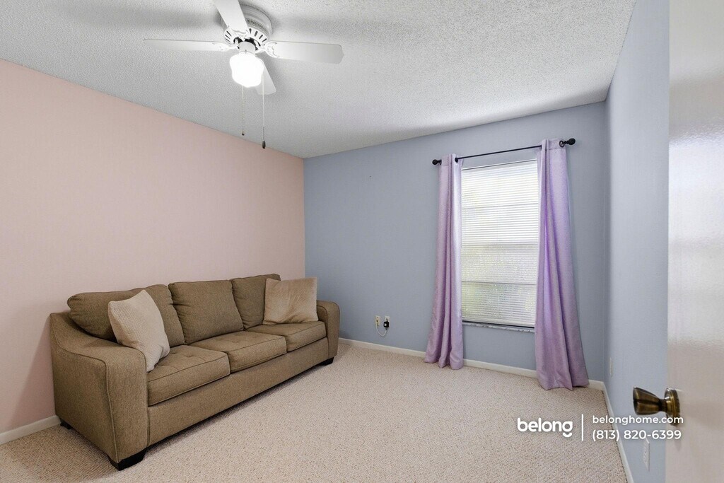Comfort and clarity define this thoughtfully arranged 3-bedroom, 2-bath home tucked into a quiet Tampa neighborhood. Warm wood flooring, generous windows, and a ceiling fan overhead create a living room that feels composed and easy to settle into at the end of the day. The kitchen is efficiently designed with bright cabinetry, ample counter space, and a full suite of stainless steel appliances, including a refrigerator, range, and dishwasher. Its open pass-through connects naturally to the dining area, where a statement light fixture centers the space and sliding glass doors invite in natural light. Just beyond, a private patio offers a peaceful outdoor corner framed by greenery and fencing - a simple spot to enjoy morning coffee or unwind in the evening. The attached garage includes a washer and dryer along with extensive built-in shelving and workspace, giving you room for storage, hobbies, or projects. Set in a calm residential pocket near Northdale, you are minutes from Northdale Golf and Tennis Club, Lake Park’s trails and nature areas, and everyday conveniences at North Pointe Plaza and Carrollwood Village Center. Grocery stores, local cafes, and restaurants along Dale Mabry Highway are close at hand, making daily routines pleasantly convenient. *Our homes come as-is with all essentials in working order. Want upgrades? Request it through the Belong app, and our trusted pros will take care of the rest!