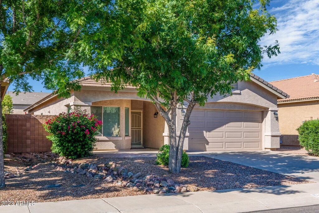 Enjoy living in this 3 bedroom,2 bath home in a lake community with community swimming pool,splash pad and playground for the all to enjoy. Your new home has easy care desert landscaping with minimal maintenance. You can relax on the front covered patio with your morning coffee or on your covered patio in the back. Home has eat in kitchen with center island and plenty of counter space. It is open to the great room which has sliding doors to the back covered patio. This is a split floor plan with master bedroom in back. Master Bedroom has a large walk in closet and dual sinks. The other two bedrooms and guest bath are to the front of the house. Laundry room with washer and dryer complete the interior of this home with you have direct entry into the home from the garage where you find a second refrigerator.