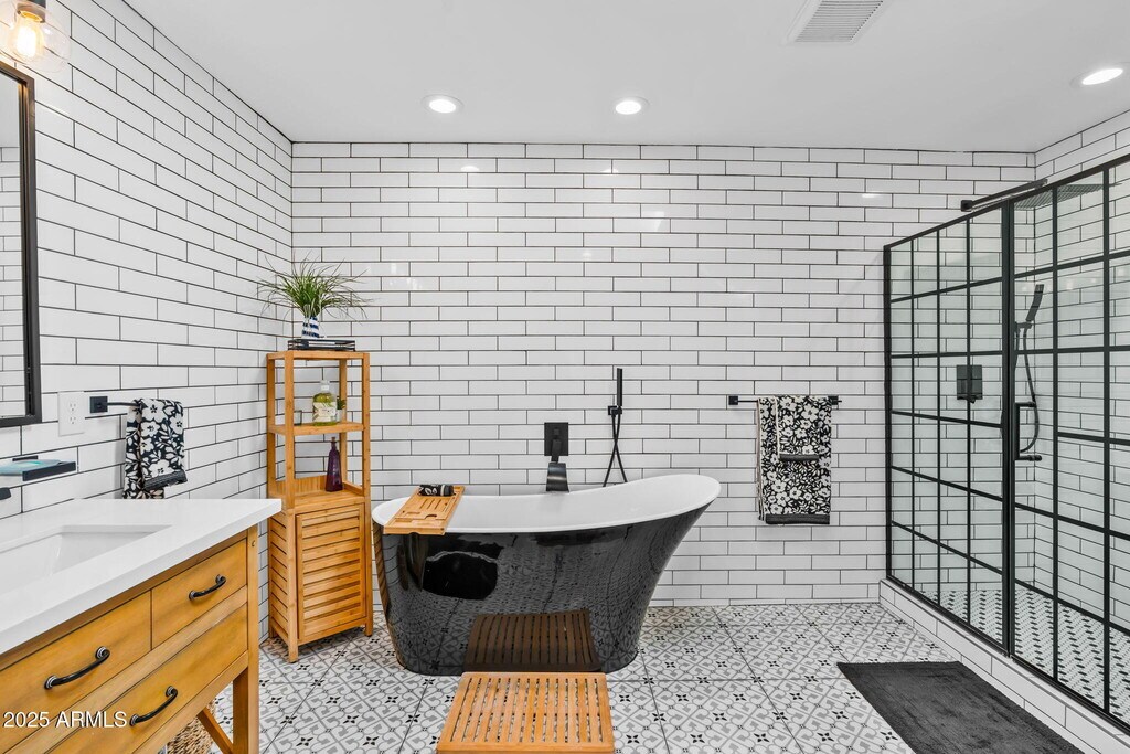 Welcome to ''Chateau de Destiny'': A luxury furnished rental retreat in the heart of Phoenix's coveted Arcadia neighborhood. This professionally designed 3-bedroom,2.5-bath home blends comfort,style,and convenience. The main house features a spacious primary suite with king bed and spa bathroom,two guest rooms with queen beds,and a fully equipped chef's kitchen with professional appliances and a Nespresso machine. Every room includes a TV with Roku,plus high-speed Wi-Fi. All utilities are included for short-term stays. Enjoy exclusive access to the private backyard and hot tub,perfect for relaxing under the Arizona sun. Ideally located minutes from Arcadia favorites,Old Town Scottsdale,Sky Harbor and much more.