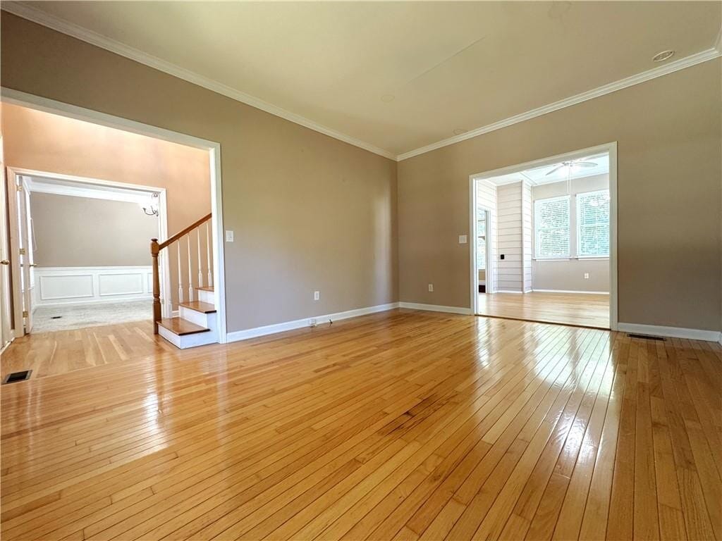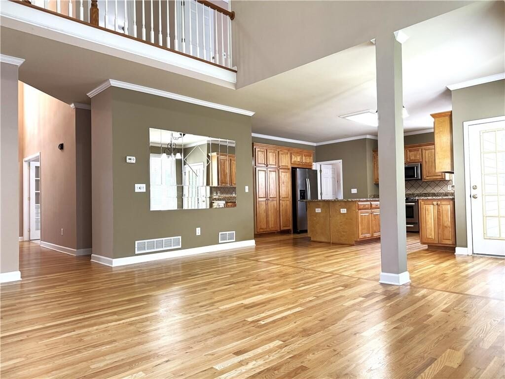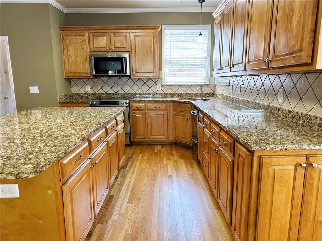 This stunning home offers incredible flexibility and thoughtful design,featuring 5–6 bedrooms,3.5 bathrooms,a sunroom,office,media room,and an amazing kitchen with exceptional storage. Beautiful hardwood floors flow throughout the main level. Main Level: Enter into a grand 2-story foyer with hardwood floors and a Palladian window. Dining Room to the left with French doors on two walls,chandelier,wainscoting,and chair rail. Office/Study #1 to the right,filled with natural light. Kitchen highlights include stainless steel appliances,stained cabinets,granite countertops,a huge island with breakfast bar,eat-in area,2-drawer dishwasher,and slide-out drawers in all lower cabinets and full-length pantry for unmatched storage. The kitchen opens to a glass-enclosed sunroom with tall ceilings,ideal for working from home or entertaining. Sunroom connects to a privacy-screened deck with access to both the backyard and driveway. Laundry Room with sink and storage,adjacent to the 2-car side-entry garage. Great Room/Family Room with cathedral ceiling,brick fireplace with gas logs,and wall of Palladian windows. Additional flexible space off the great room—perfect for Office #2,Sunroom #2,Playroom,or Homework room. Upper Level: Primary Suite with double-tray ceiling,Palladian window,sitting area,and luxurious bath with dual vanities,soaking tub,walk-in shower,ceiling fan,large walk-in closet,and linen closet. Bedrooms #2–#4 feature vaulted ceilings and Palladian windows,sharing a full hall bath with double vanities. Finished Basement: Includes Bedroom #5,a bonus room (potential 6th bedroom),living room,full bath,large workroom/storage room,and three additional utility/storage closets. Walks out to a patio with access to a 2nd garage suitable for work or extra storage. Exterior & Community: Expansive backyard. Located in the Lansfaire/Lansmoore community with clubhouse,swimming pools,tennis courts,playground,and park area. Landlord pays HOA. Close to major shopping and dining. This home truly combines elegance,functionality,and lifestyle amenities for the perfect living experience.