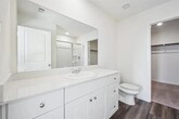Enjoy extra privacy with no neighbors behind you and additional space next door on a quiet cul-de-sac, all for lease at $2,499 per month; as you enter, you’re welcomed by a foyer with immediate access to the staircase, passing a storage closet, a bedroom with a full bath, and entry to the two-car garage before opening into a connected family room, dining area, and kitchen, while upstairs features a spacious loft, two secondary bedrooms with walk-in closets and a shared full bath, plus a private primary suite with its own bath and generous walk-in closet, along with a conveniently located laundry room.