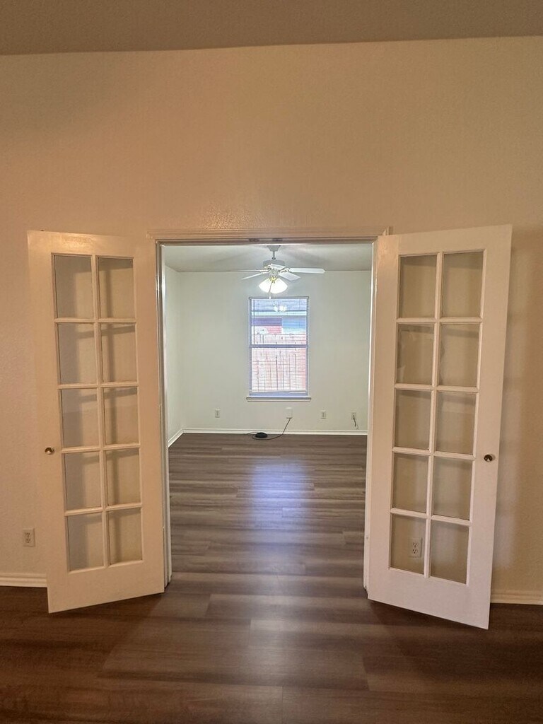 Take a look at this wonderful 3 bedroom 2 bath home PLUS an additional office/bonus room. With new vinyl flooring throughout, this home features a split floorplan with a corner fireplace in the living room. The large kitchen includes all appliances including a built-in microwave, smooth top range, refrigerator and dishwasher and a dining area with bay windows overlooking the private backyard and covered patio. Each spacious bedroom features ceiling fans and the primary bedroom/bathroom includes his and hers walk- in closets plus a jetted tub. Call for your private showing today!