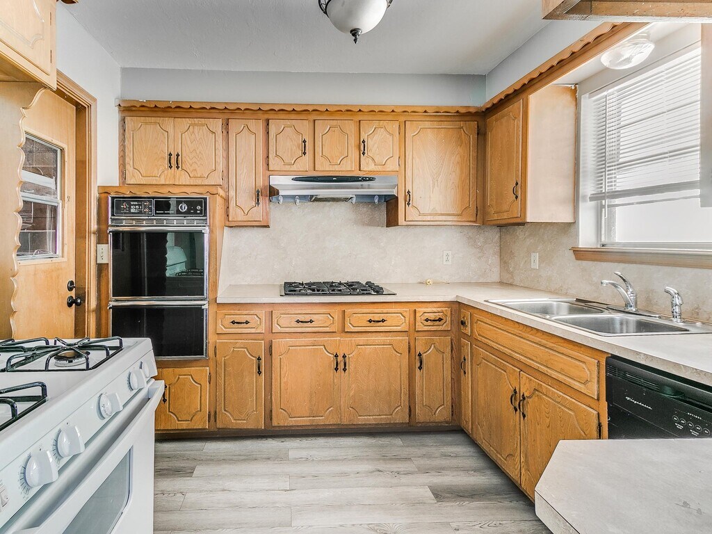 Single family home on the North side of Shawnee near 45th and Kickapoo. Near tons of local shopping and restaurants. Could be used as a 4 bedroom or 3 Bedroom with 2 living areas, wood burning fireplace, new paint, new flooring. Refrigerator and Stove Included. Tenant to pay all utilities. $500 non-refundable pet deposit.