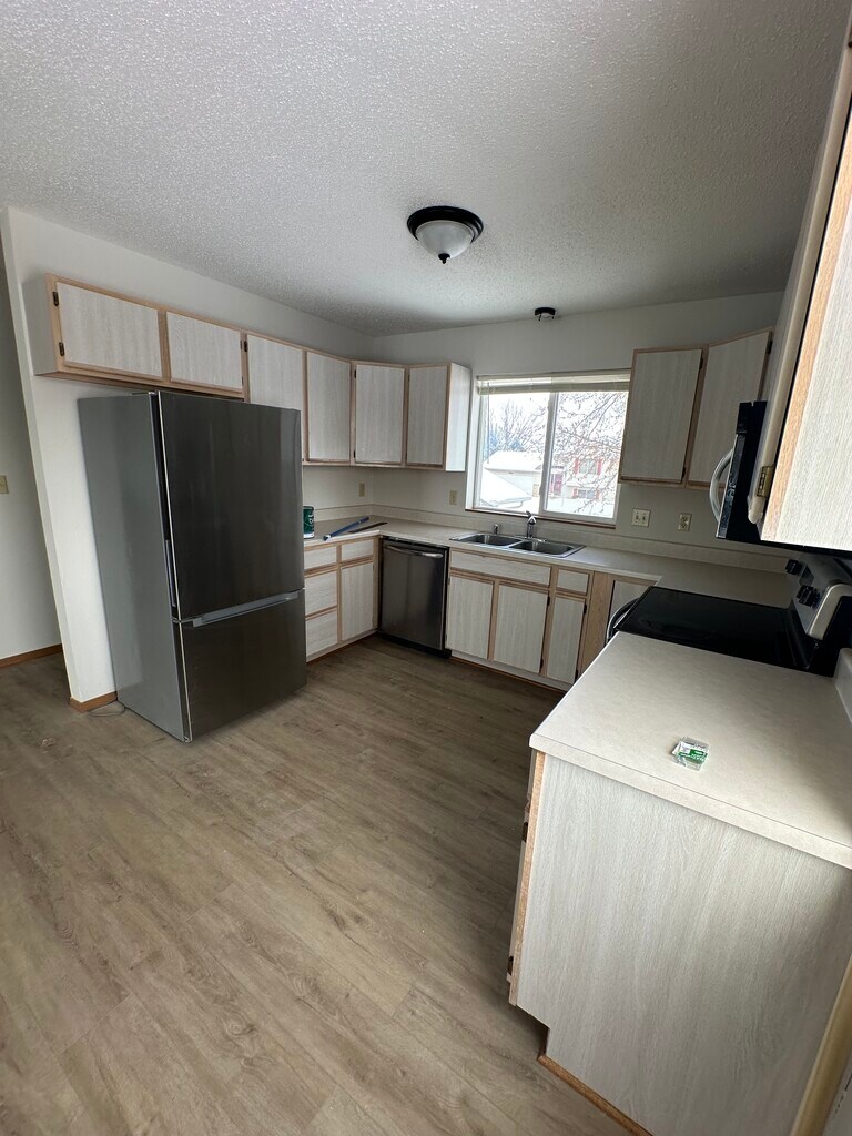 Single family house in NW Sioux Falls, FENCED YARD, Huge 16x16 Deck, fresh paint and all new flooring! Two bedrooms, a newly remodeled bathroom, and the open kitchen / dining / living room area upstairs, and a 3rd bedroom, another full bath, and a large family room downstairs. Lots of storage in this unfinished laundry room too, with hook ups for your w/d. Attached 2 car garage Winter special, only $1999 on 16 month lease! No smoking or vaping of any substance in the home or garage. Renters insurance required. Pets ok with $500 pet deposit and $50 per month per pet for pet rent. Virtual tours available with real estate broker if needed- professional property management company.
