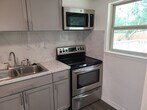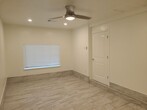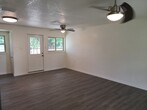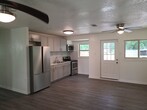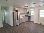 Property renovated three bedroom 1 bath home. Very modern and clean in grey tones. Updated fixtures through out home. Home features ceramic flooring and carpet in the secondary bedrooms. Very modern ceramic bathroom and shower with updated fixtures. As you enter it is an open and the initial living area is open to the dining room and kitchen. To the right is a living room which was a garage but has been properly redone and add sq. ft. to the home. Kitchen appliances are updated and are stainless steel. Exterior features Covered parking and back yard features a large patio the length of the home. Home also has mature trees and a storage shed. $400.00 non-refundable cleaning fee.