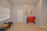 This beautiful 4-bedroom, 3-bathroom single-story home with a 2-car garage features a modern open layout with high ceilings and a cozy fireplace in the spacious living room. The elegant design includes tile flooring throughout, a stylish kitchen with stainless steel appliances, quartz countertops, designer backsplash, and fresh paint. Each bedroom with ceiling lights, and the bathrooms also showcase quartz countertops, with the master bathroom featuring a double sink. The home boasts a sparkling pool in a huge backyard perfect for entertaining, along with low-maintenance desert landscaping in the front. Conveniently located near schools, shopping centers, and freeway access, fully furnished, this must-see home perfectly combines comfort, style, and convenience. Rent including Trash & Sewer Fee $50/mo, Pool Service $150/mo. ** PET POLICY ** Landlord does not accept pets at this property. **Security Deposit $2150, Key Deposit $100, Non-Refundable Cleaning Fee $350. Minimum credit of 620. 3 x rent as net income. Please contact for tour or more info.