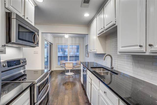 Welcome to 4409 Cole Avenue, Unit F, a two-bedroom, two-and-a-half-bath condominium ideally located in the heart of Knox-Henderson. Upon entering, you'll be greeted by an open and airy living space featuring high ceilings and abundant natural light. The living room boasts a cozy fireplace, creating a warm and inviting atmosphere for relaxation or entertaining guests. Adjacent to the living area is a modern kitchen equipped with granite countertops, stainless steel appliances, and ample cabinetry. The primary bedroom suite offers a spacious retreat with an en-suite bathroom and generous closet space. The second bedroom is equally well-appointed, and includes an ensuite bath and walk-in closet. The unit is complete with an attached 2-car garage.