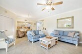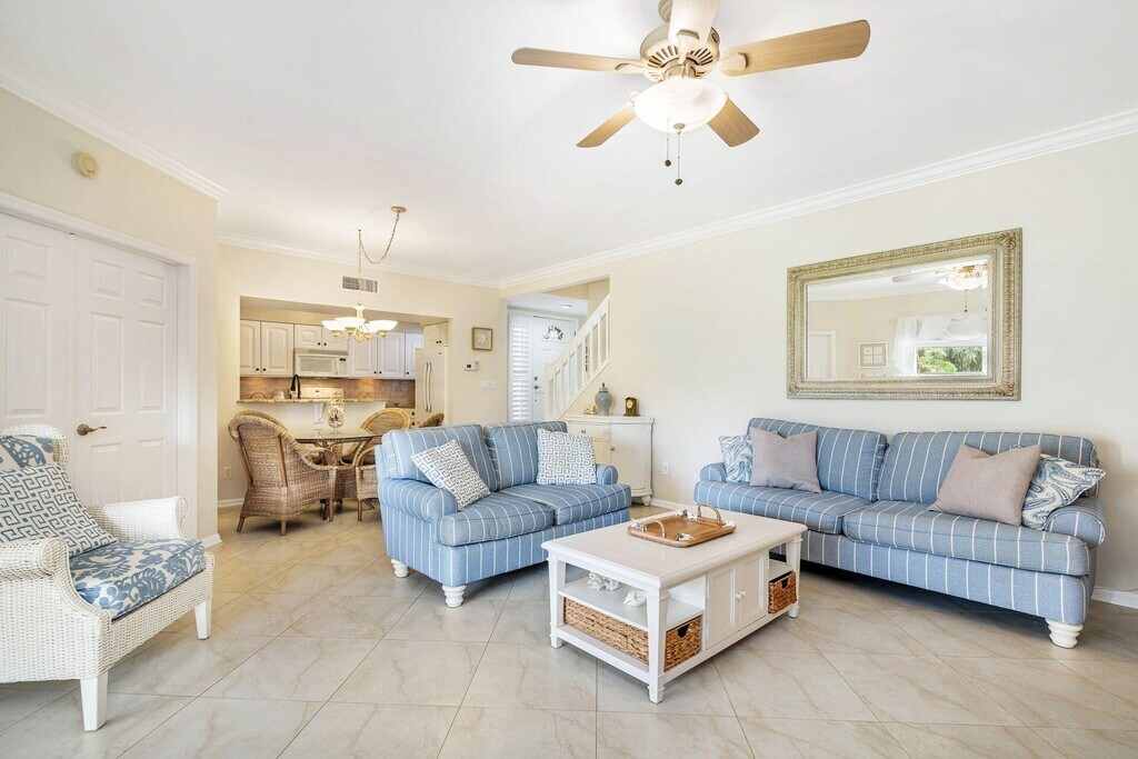 Walk to the turquoise waters of Jupiter Beach from this beautifully updated 2 level, 2 bed, 2.1 bath END UNIT condo on the 11th hole of the Jupiter Dunes Golf Course. Relax on the screened lanai & enjoy the ocean breezes & golf course views. The lovely first floor condo offers an updated kitchen w/granite c-tops, white cabinetry, tiled backsplash. Living & dining room with golf views; primary bedroom with updated ensuite bath + 1st powder room. 2nd floor offers a private guest suite & updated bath. Additional features: Fully furnished, plantation shutters, crown molding, 1 car garage, full sized W/D. Located in Jupiter's Inlet District, an excellent location steps to the beach, pool, golf & a short walk to waterfront restaurants & shops. Come live at the beach for the 2026 Season!