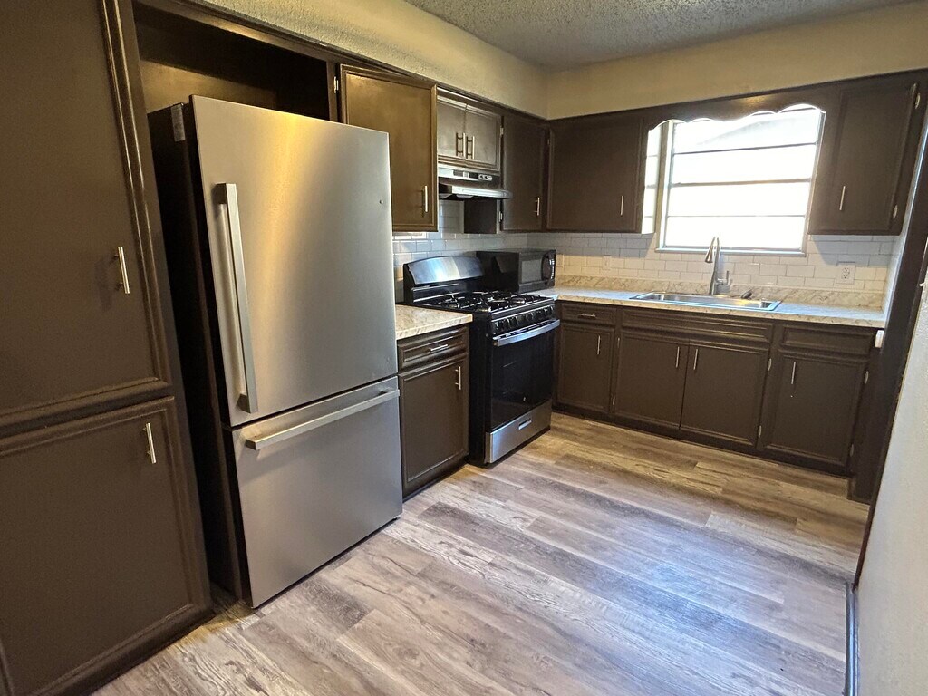 Welcome to 4409 Lehigh Street,a charming 3-bedroom,2-bathroom ranch-style home located in a quiet,established neighborhood in Lubbock. This 1,139 sq ft residence offers an inviting floor plan with updated vinyl plank flooring,neutral paint tones,and generous natural light throughout. The refreshed kitchen features dark cabinetry,granite-look countertops,a gas range,and stainless-steel appliances all included for your convenience. The spacious living room provides a comfortable layout for everyday living and entertaining. Each bedroom offers ample space,closet storage,and easy access to the home's two full baths. Enjoy outdoor relaxation under the shade of mature trees in the fully fenced backyard. A covered front porch adds extra charm to the front curb appeal,and the 1-car attached garage plus extended driveway provides ample off-street parking. This pet-friendly rental includes a matching security deposit equal to one month's rent and is move-in ready. Located near shopping,dining,and just a short drive to campus and major employers,this home combines comfort,convenience,and value.
