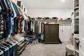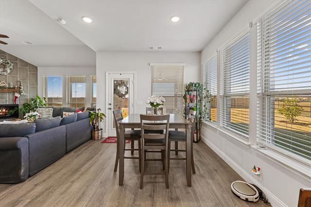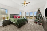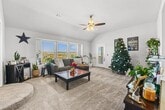 This 4-bed, 3.5-bath home has two living areas, an ensuite setup, and INCLUDES a fully furnished media room with massage chairs, projector, and surround sound—so yes, it’s set up for real life and entertaining. When you walk in, you’ll pass a formal dining space and a front office with french doors and LVP throughout the main areas. The half bath sits just off the mud bench and full laundry room and leads straight to the 2.5-car garage with epoxy floors and additional storage shelving. The kitchen has a massive island, custom cabinets, a walk-in pantry, and a full-size smart refrigerator INCLUDED!! All counters throughout the home are natural stone or quartz. Out back, the covered patio has INCLUDES a mounted TV and a wind break so it’s comfortable year-round. Downstairs also includes a large family room and breakfast nook, perfect for hosting. The primary suite is oversized with room for a sitting area, lush carpet, separate vanities, a large walk-in shower, and a massive closet with an additional storage room that doubles as a storm shelter. Upstairs, you’ll find another living or game room with a front-facing patio, two large secondary bedrooms, and a third bedroom that works as a second primary with its own full bath. This layout works well for multi-generational living, guests, and working from home.