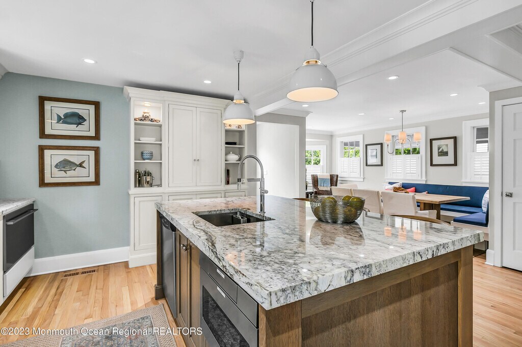 Available Summer 2026 & Off Season. Avail 8/21- 9/11 @ $ $13,000 per week. Avail 5/1-6/26 & 9/11-10/2 @ $10,500 per week. Summer rentals are Friday to Friday. Off Season avail @ $5,000 per week. Totally renovated beach block 6 BR,5.5 BA home is ideally located just 3 houses to the beach & 1 1/2 blocks to town. HW flrs,granite kit w/eat-in center island that opens to a nice size dining area & living room w/ French doors that lead to a screened in porch & fenced-in backyard w/gas grill. 1st flr also hosts 2 bedrooms,one en-suite & updated hallway bath. 2nd flr features a great master suite w/sliders to a private balcony w/ partial ocean views,2 more BRs w/ jack n Jill bath. 3rd flr features the 6th BR,full bath & den area w/sliders to a balcony w/ more ocean views. No Pets.