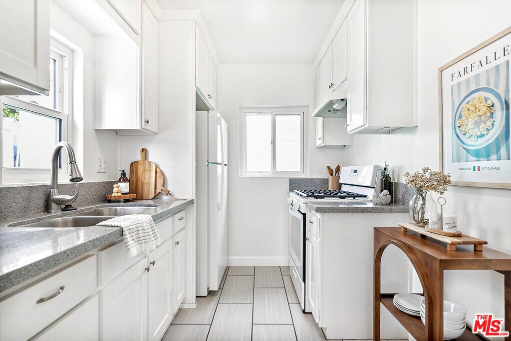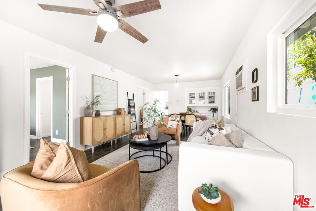 Nestled in the vibrant community of East Los Angeles, this exceptional front unit stand alone single family home offers a rare opportunity. Situated on a spacious 6,686 sqft lot, this 2 bed 1 bath bungalow is thoughtfully updated, showcasing modern upgrades including updated plumbing and electrical systems, remodeled kitchen with quartz countertops, a stainless steel sink, ceramic tile flooring, and dual-pane windows. Comfort is ensured year-round with updated AC and heating systems. To top it off, there is a laundry area/room with washer and dryer inside the home. It has its own private 2-car garage, along with separate outdoor spaces, enjoy a welcoming freshly painted front porch and gated front yard. The fully fenced lot is enhanced with mature fruit trees, offering both privacy and charm. Conveniently located just minutes from major freeways and only about 10 minutes from Downtown Los Angeles, you'll have easy access to hotspots like the Arts District, Little Tokyo, and ROW DTLA known for their dynamic dining options. MLS# 26752403