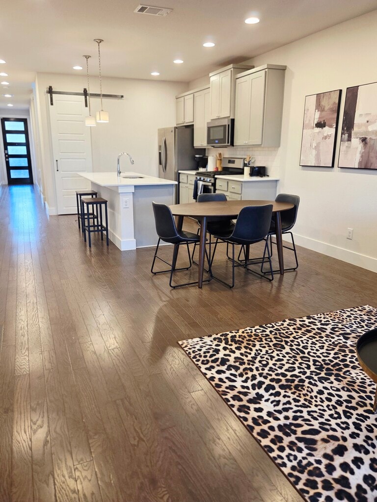 Experience elevated extended-stay living in this beautifully furnished San Antonio home curated specifically for traveling professionals, corporate leaders, medical personnel, and military members seeking comfort, privacy, and turnkey convenience. This spacious 3-bedroom, 2.5-bath residence blends refined style with practical functionality — offering a peaceful retreat after demanding workdays while maintaining easy access to San Antonio’s major medical centers, business hubs, and military installations. Highlights of the Home -Fully furnished with tasteful, upscale décor and premium finishes -All utilities included (high-speed WiFi, electric, water, lawn care) -Dedicated workspace ideal for remote or hybrid professionals -Fully equipped kitchen with quality cookware and dining essentials -Comfortable living spaces designed for relaxation and productivity -In-home washer and dryer -Quiet, well-maintained neighborhood setting Ideal For -Traveling nurses, physicians, and healthcare specialists -Corporate or government assignments -Military TDY, PCS transitions, or contractor stays -Executives on extended projects -Professionals relocating to San Antonio Every detail is designed to provide a stress-free, move-in-ready experience so you can focus on work, wellness, and enjoying your stay. Lease options typically range from 30–90+ days.
