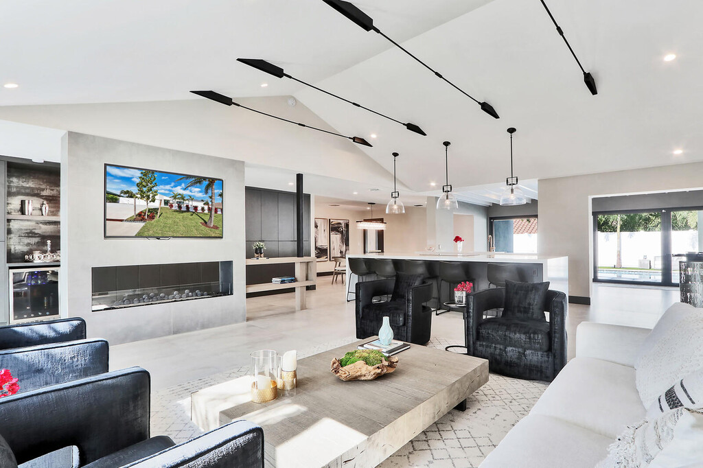 Welcome to your seaside retreat. Enjoy this professionally designed and decorated beachside paradise bringing the Northwest feel to the Juno seaside,.There is not a detail missed in this luxurious home.Sleeps 14, dining for 20. Restoration Hardware inspired decor throughout including furnishings, Italian imported porcelain concrete look flooring, and kitchen and bath appointments.The spacious and bright double living area is conducive to large gatherings featuring a double sided fireplace, entry wet bar and two separate bar top dining areas.. Entertainment room with 86'' tv and foosball table opens out into the fabulous covered outdoor living space. Kitchen features Thermadore Integrated appliances, quartz counter tops, ample custom cabinetry,printer/charger bar work station,built-in oven