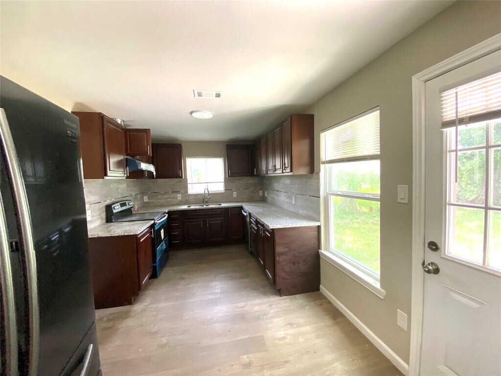A completely remodeled one-story home with 4 bedrooms and 2 full bathrooms,located at the end of a very quiet street in Stafford. The home offers easy access to Hwy 90 and I-69/59 and is just a 1-minute drive from Dulles High School. The house features laminate flooring throughout,with no carpet. The spacious kitchen has brand new appliances and a door leading to the backyard. Utilities are located inside the house. The living,family,and dining rooms are all connected to each other,creating a seamless flow. Refrigerator,Washer and Dryer are included. The house is ready for move-in. MLS# 67979397