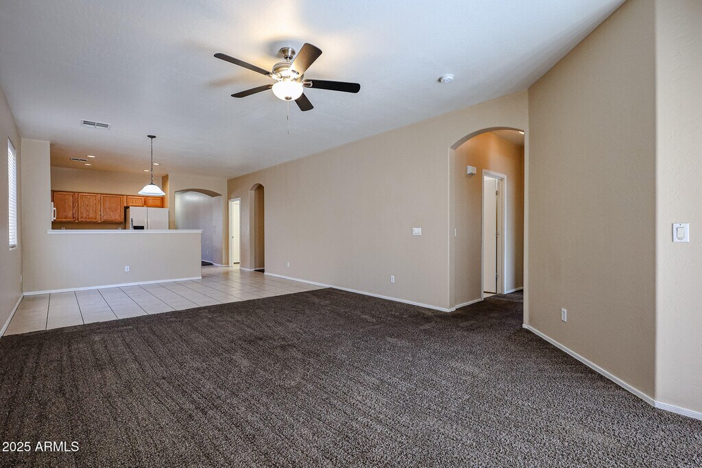 Welcome home to this charming 4-bedroom,2-bathroom single-level residence in The Villages at Rancho El Dorado! Fresh interior paint enhances the inviting formal living and dining areas,while the spacious family room offers plenty of room for relaxing or entertaining. The bright kitchen flows seamlessly into the living spaces,creating an open and welcoming feel. Step outside to a large backyard with easy-care landscaping and a covered patio,perfect for enjoying Arizona's beautiful weather. Additional highlights include ceiling fans and window blinds throughout and a two-car garage. Just a short walk to the neighborhood park,this home combines comfort,convenience,and community living.