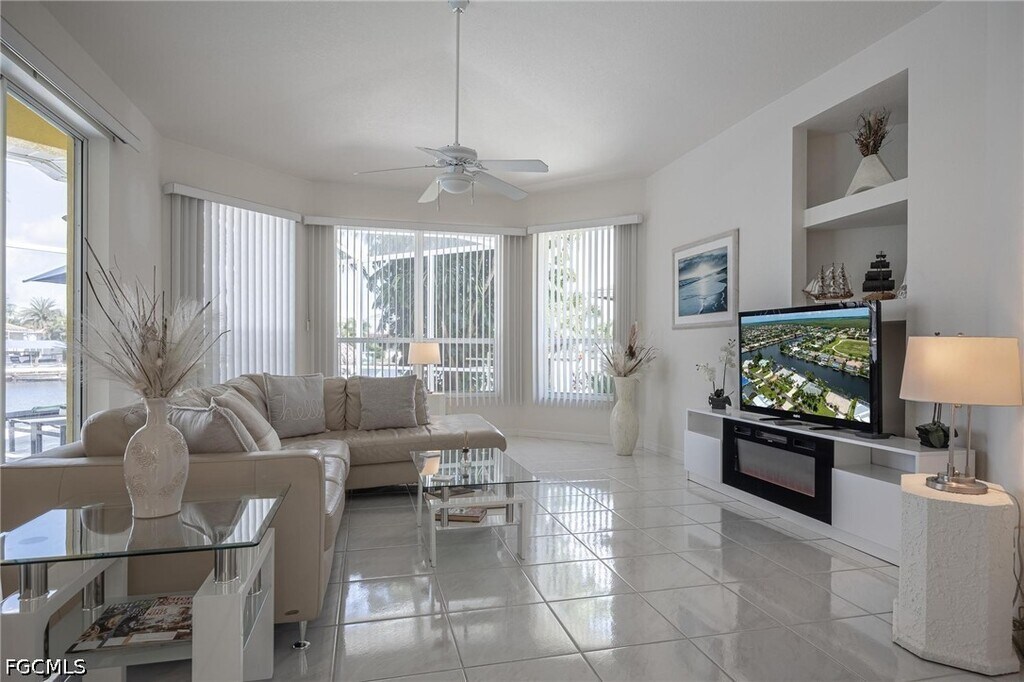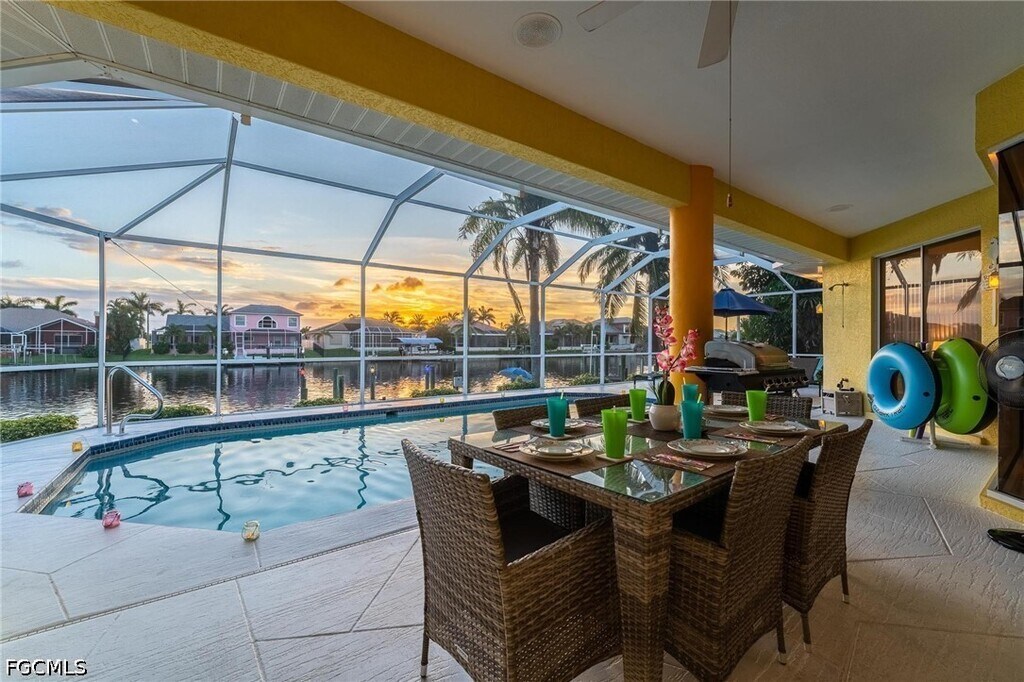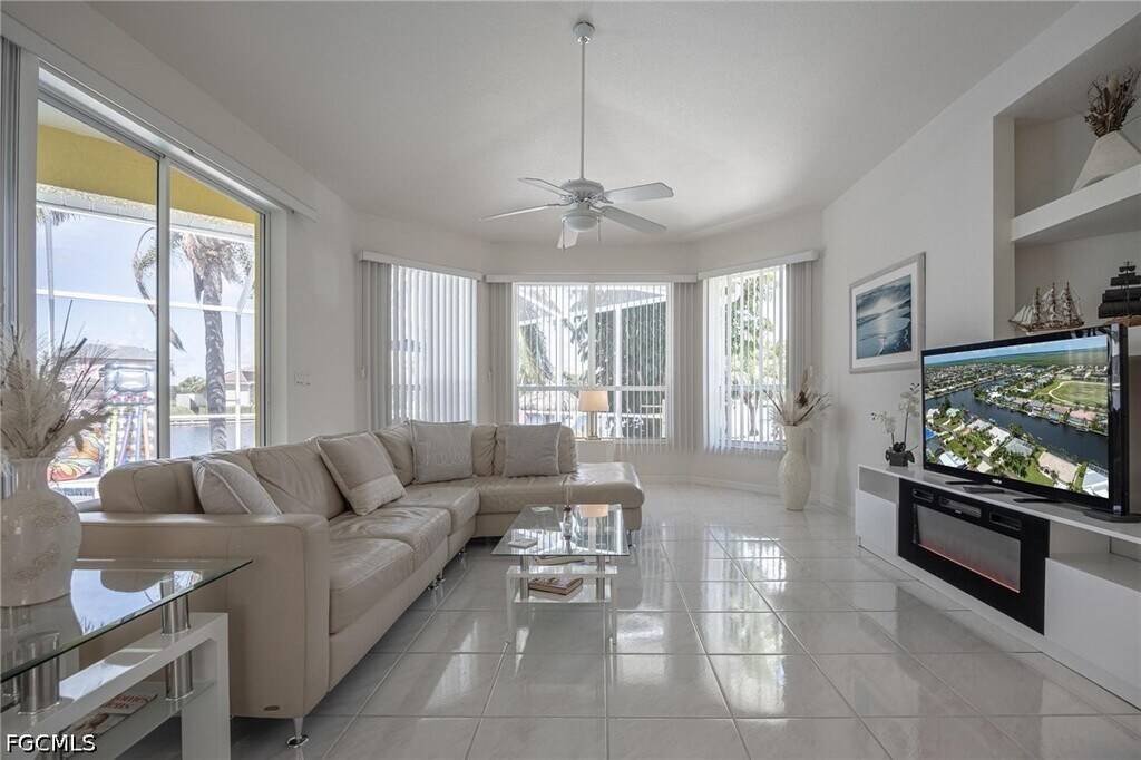 Boasting over 2,200 square feet of living space,this home is designed for those who appreciate an airy,open atmosphere. The high vaulted ceilings and expansive sliding glass doors create a seamless flow between indoor and outdoor living. The spacious floor plan features a beautiful electric fireplace,adding a touch of class and warmth to the main living area—perfect for quiet evenings at home. Large windows throughout ensure the home is bathed in the famous Florida sunshine,highlighting the "million-dollar views" of the water. Enjoy a large,screened-in lanai featuring a heated swimming pool,ideal for year-round exercise and relaxation. Located in a quiet,sought-after pocket of Southwest Cape Coral,you are minutes away from local dining,shopping,and entertainment,while enjoying the tranquility of a residential waterfront neighborhood.