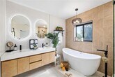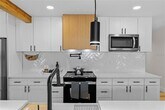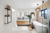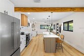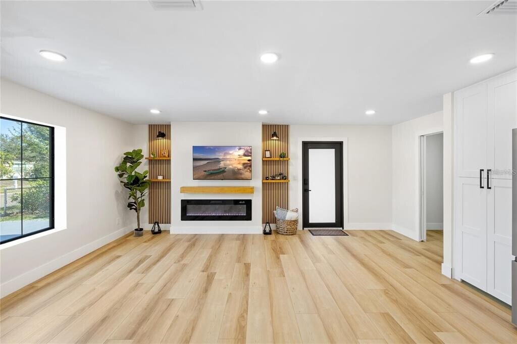 Welcome to this fully remodeled 3-bedroom,2-bath residence offers 1,684 square feet of open-concept layout featuring luxury vinyl plank flooring,acoustic Oak wood slat paneling,abundant natural light through sleek black impact-rated windows and doors. The designer kitchen is the centerpiece of the home,showcasing an expansive 8-foot island with a Fireclay farmhouse sink,quartz countertops,brand-new stainless steel Whirlpool appliances,pot filler,and an oversized walk-in pantry with built-in outlets. The open living area is warm and inviting,highlighted by ambient ceiling lighting and a modern electric fireplace. Both bathrooms are inspired by a serene Bali-style spa design with floating vanities,illuminated fog-free mirrors,Bluetooth exhaust fans,and built-in night lighting. The primary bathroom features double floating solid wood vanities,a freestanding soaking tub,a walk-in shower,and a state-of-the-art auto smart bidet toilet. The backyard features a powered modern pergola ideal for relaxing or entertaining,complemented by minimalist landscaping. Additional highlights include hurricane impact windows and doors throughout,and a wide driveway accommodating three vehicles parked side by side. Schedule your showing today! This will not last long! MLS# TB8487055