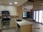 Rare one-story condo in the desirable College Terrace condo complex. This condo offers 1353 sq. ft. and was originally built in 1974. Remodeled kitchen and custom interior paint bring a whole new look to this unit. The floorplan offers a large living room with fireplace and built in bookcase and cabinets, plus wood shutters, tiled dining area and interior laundry room. Kitchen has granite countertops, newer cabinets and cupboard pantry. Appliances include electric stove/oven, dishwasher, microwave, and refrigerator/washer/dryer are included with no warranties. Both bedrooms are extra-large. Master bathroom has a walk-in shower. Two private patios and attached 2-car garage are extra features to be enjoyed. Owner pays HOA dues which include water and trash service. Owner prefers no pets but would consider subject to HOA rules and owner approval with an additional pet deposit to be determined. 1 year lease required.