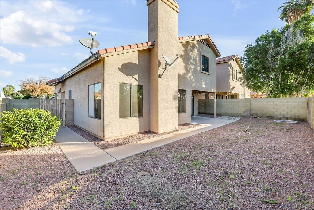 Nestled in a vibrant community bordering Ahwatukee, this exquisite home offers a perfect blend of comfort and convenience. Featuring a downstairs master suite and three additional spacious bedrooms upstairs, this residence is designed for modern living. The open great room concept boasts soaring high ceilings, a cozy fireplace, and elegant laminate flooring, creating an inviting atmosphere. Large Arcadia doors seamlessly connect the interior to a private rear yard, perfect for outdoor relaxation and entertaining. The kitchen showcases stunning granite countertops and a convenient breakfast bar, ideal for casual dining. Brand new carpets! Located in a prime area, you'll enjoy effortless access to shopping, major freeways like I-10 and Loop 202, and essential amenities. Just minutes away from Chandler Regional Hospital, ASU, and INTEL, this home is perfectly situated for both work and play.