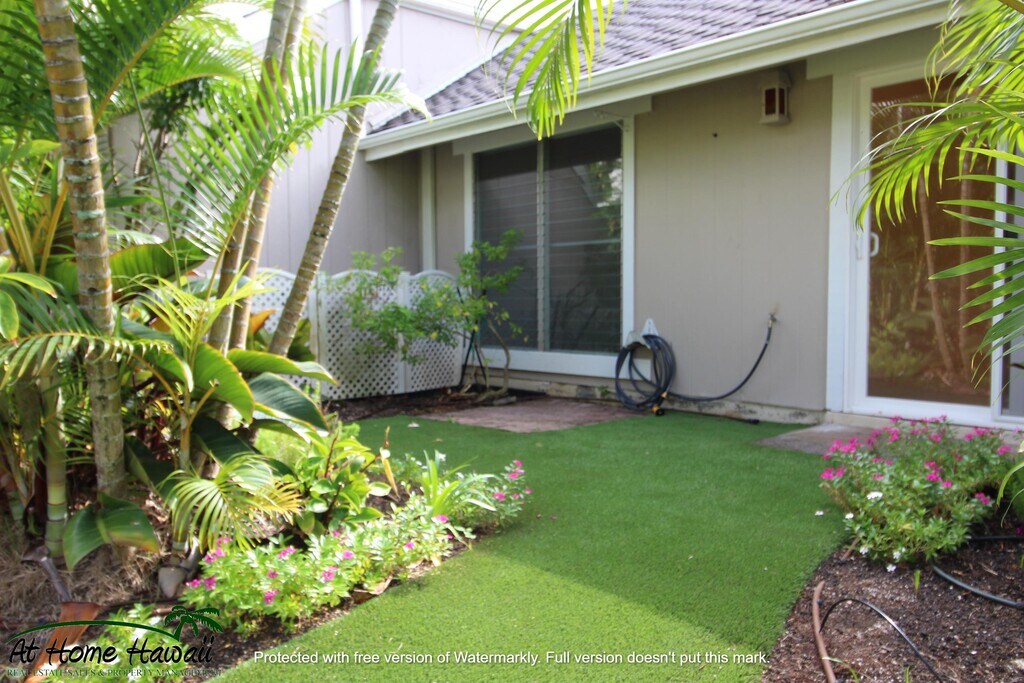 Available on 1/14/2026 Recently remodeled with luxury vinyl plank flooring and paint. This charming SINGLE LEVEL townhouse is a 2 bedroom unit, 1.5 bathrooms, with the half bath in the master bedroom and is finished with premium details, including custom cabinetry, built-ins, travertine kitchen/bath flooring, granite countertops, ceiling fans throughout, 3 quiet split AC's, and a washer/dryer. There is also a lanai and landscaped backyard + front courtyard. 2 assigned parking stalls, clubhouse, meeting room, pool, and jogging path are included in the Yacht Club Terrace amenities. Rent includes water & sewer. $3400/mth for a 1-year renewable lease or $3600/mth for a 6-month renewable lease. Video Tour can be seen here: APPLY FOR FREE NOW: To schedule a showing appointment and/or for any questions, message Greg Siok, Realtor at , no calls please over the holidays. Listed by At Home Hawaii Real Estate Sales & Property Management, 1750 Kalakaua Ave. #2108 Honolulu HI 96826 View homes for sale at
