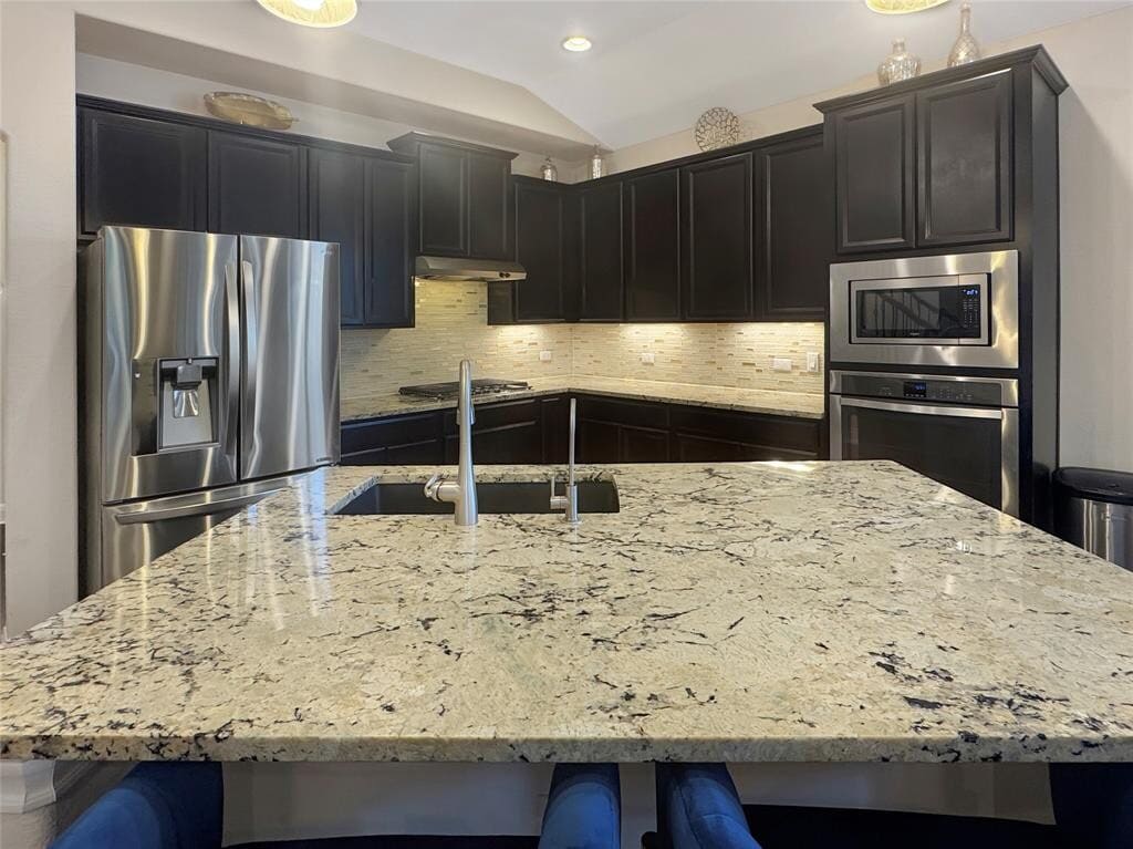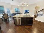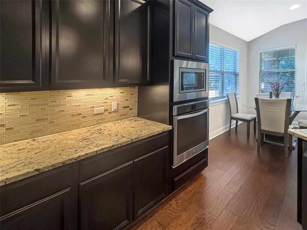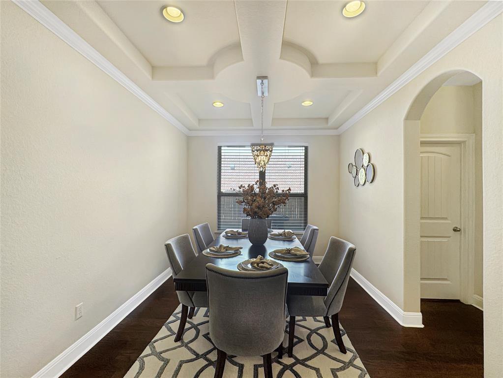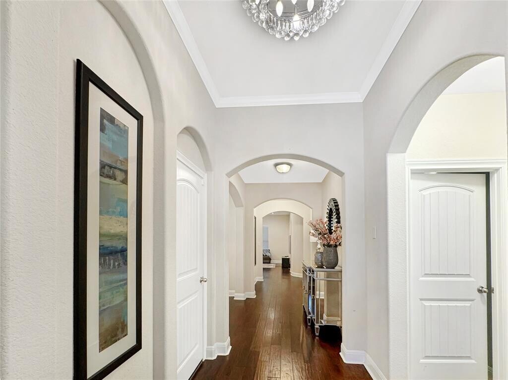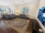 This beautifully designed single-family home offers an exceptional layout, perfect for both comfort and entertaining. Located in one of the most sought-after communities in Texas, this home is zoned to some of the best schools in the state. Step through the impressive entry corridor into an open-concept living space that exudes warmth and elegance. The thoughtfully designed floor plan features a spacious primary suite plus two secondary bedrooms conveniently located on the main level. The primary bedroom is a true retreat, complete with a charming bay window ideal for a seating area and a luxurious ensuite bathroom with a separate soaking tub and shower for ultimate relaxation. The formal dining room boasts stunning coffered ceilings, while rich wood flooring flows throughout the main living areas on the first floor, adding timeless sophistication. The chef’s kitchen is both functional and beautiful, featuring a large center island with a deep single-basin sink, sleek granite countertops, and stainless steel appliances—including a built-in oven, microwave, and gas cooktop. Whether you're preparing meals or entertaining guests, this space offers the perfect blend of style and convenience. Upstairs, you'll find a generous game room filled with natural light—perfect for movie nights or playtime—as well as a large junior suite with its own private ensuite bath, offering excellent privacy for guests or multigenerational living. Step outside to an oversized covered patio, ideal for enjoying the beautiful Texas breezes and hosting outdoor gatherings. The large backyard offers plenty of space for a kids’ play area or room for pets to roam freely. Additional features include a Reverse Osmosis water filtration system, a water softener, foam insulation for energy efficiency, and a new 2024 roof. The living room is equipped with a surround sound speaker system for the ultimate entertainment experience. Refrigerator, washer, and dryer are also included for added convenience.