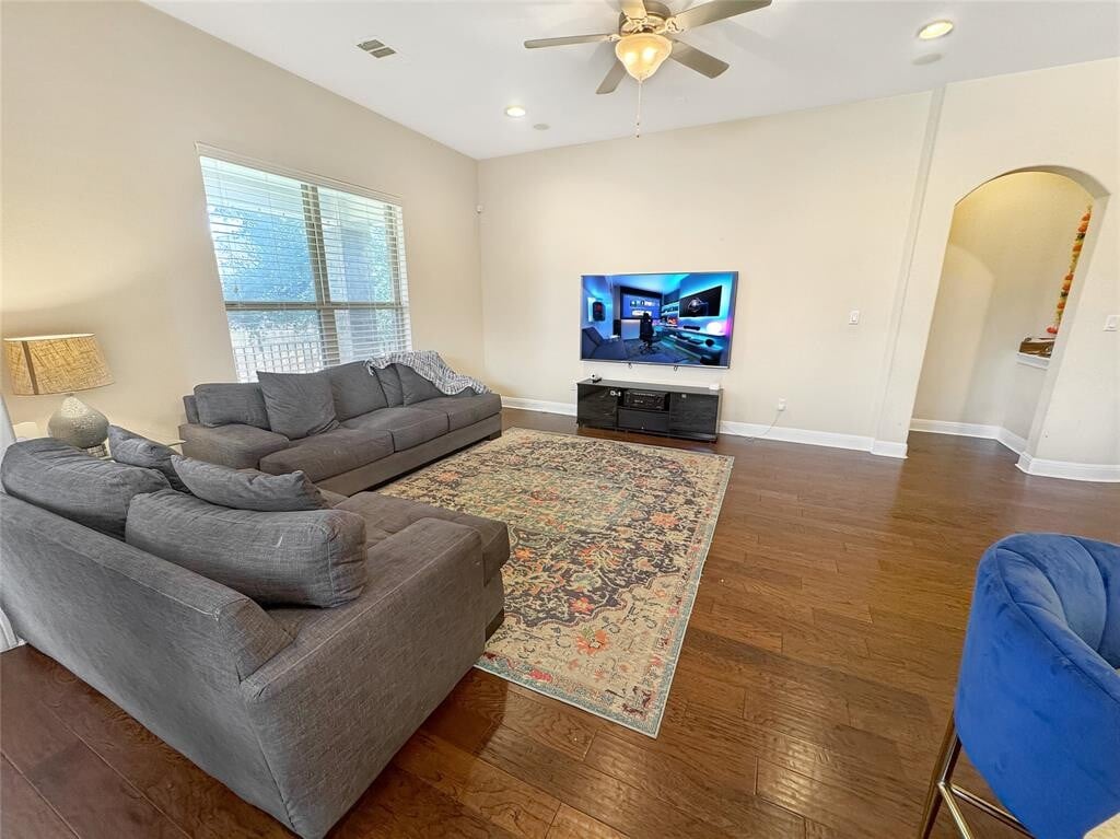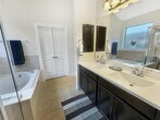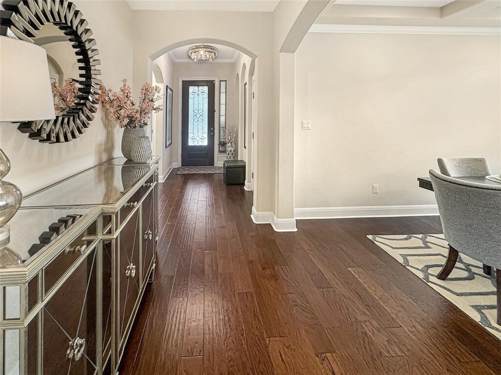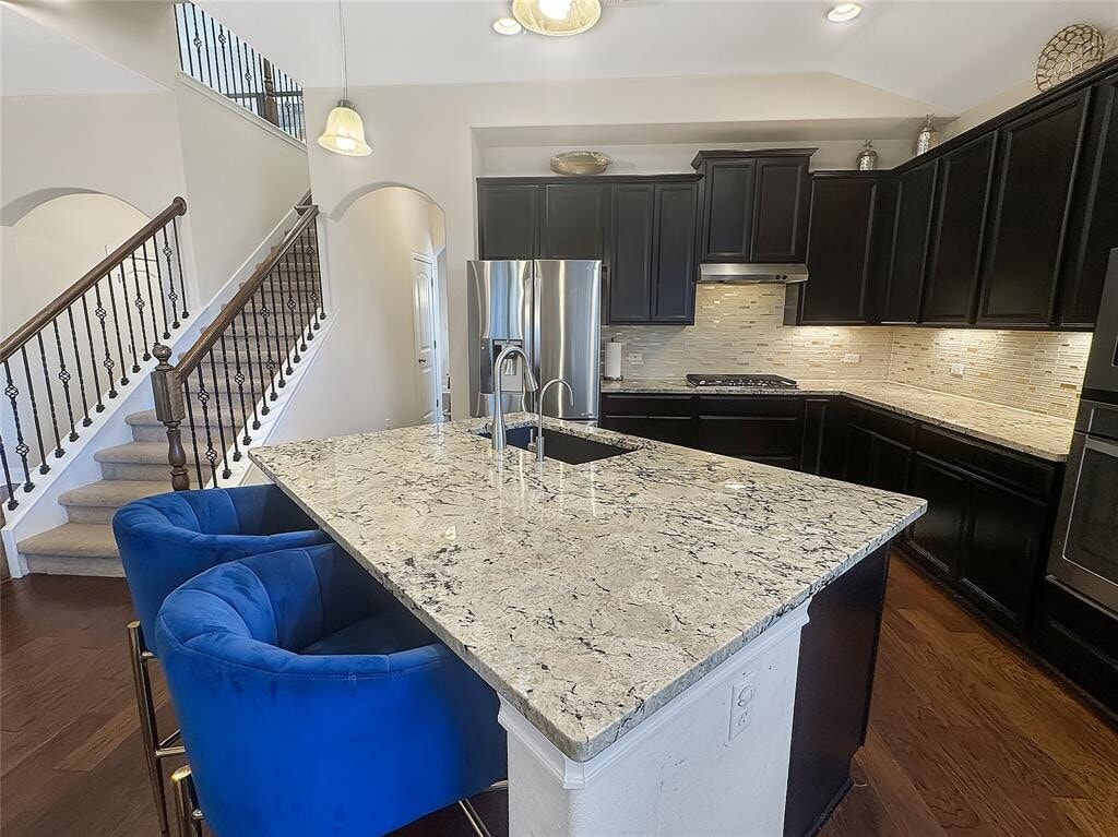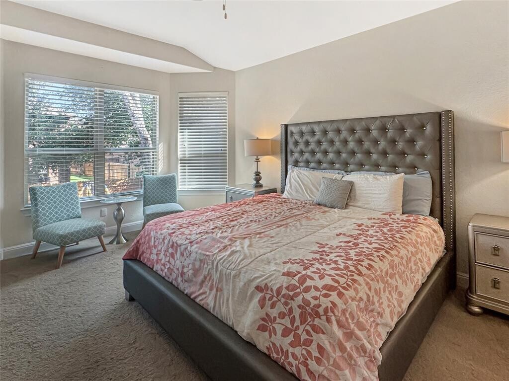 This beautifully designed single-family home offers an exceptional layout, perfect for both comfort and entertaining. Located in one of the most sought-after communities in Texas, this home is zoned to some of the best schools in the state. Step through the impressive entry corridor into an open-concept living space that exudes warmth and elegance. The thoughtfully designed floor plan features a spacious primary suite plus two secondary bedrooms conveniently located on the main level. The primary bedroom is a true retreat, complete with a charming bay window ideal for a seating area and a luxurious ensuite bathroom with a separate soaking tub and shower for ultimate relaxation. The formal dining room boasts stunning coffered ceilings, while rich wood flooring flows throughout the main living areas on the first floor, adding timeless sophistication. The chef’s kitchen is both functional and beautiful, featuring a large center island with a deep single-basin sink, sleek granite countertops, and stainless steel appliances—including a built-in oven, microwave, and gas cooktop. Whether you're preparing meals or entertaining guests, this space offers the perfect blend of style and convenience. Upstairs, you'll find a generous game room filled with natural light—perfect for movie nights or playtime—as well as a large junior suite with its own private ensuite bath, offering excellent privacy for guests or multigenerational living. Step outside to an oversized covered patio, ideal for enjoying the beautiful Texas breezes and hosting outdoor gatherings. The large backyard offers plenty of space for a kids’ play area or room for pets to roam freely. Additional features include a Reverse Osmosis water filtration system, a water softener, foam insulation for energy efficiency, and a new 2024 roof. The living room is equipped with a surround sound speaker system for the ultimate entertainment experience. Refrigerator, washer, and dryer are also included for added convenience.