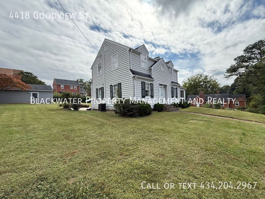 Welcome Home to 4418 Goodview Street! This 3 bedroom, 1.5 bathroom home is in the heart of Lynchburg with quick access to Wards Road, Timberlake Road, local universities, and all your shopping, dining, and convenience needs! When you walk in, you are greeted to the main floor accented with hardwood floors, an elegant foyer that leads to spacious living room with access to the patio, an office, half bathroom, kitchen with breakfast nook and charmed with range, refrigerator, and dishwasher, and a formal dining room. Upstairs offers three bedrooms and a hall bathroom with hardwood flooring, so benefits of no carpet! Outside offers garage for off street parking or bonus storage space! Tenant responsible for all utilities and yard maintenance. $45 Application Fee Per Person or Guarantor.