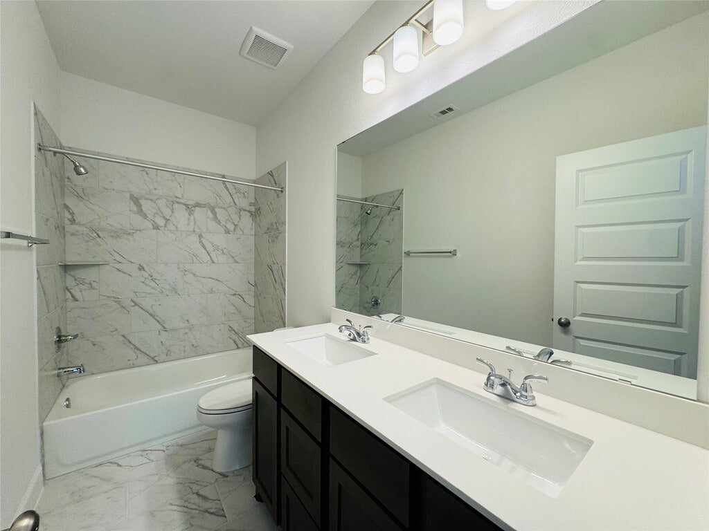 Step onto this 2-story Perry Home with a soaring two-story entry. Just off the foyer is a private home office with elegant French doors. Beyond the staircase,the kitchen shines with a corner walk-in pantry,a 5-burner gas cooktop,and a spacious island with built-in seating. The dining area flows seamlessly into the family room,featuring a wall of windows and access to the covered backyard patio. The primary bedroom is filled with natural light from its wall of windows. French doors lead into the spa-like primary suite with dual vanities,a relaxing garden tub,a glass-enclosed shower,and an oversized walk-in closet. A private guest suite is conveniently located near the utility room across from the kitchen. Upstairs,a bright and expansive game room welcomes you,along with secondary bedrooms featuring walk-in closets and a shared full bathroom. A mudroom off the two-car garage adds everyday convenience. MLS# 16214192