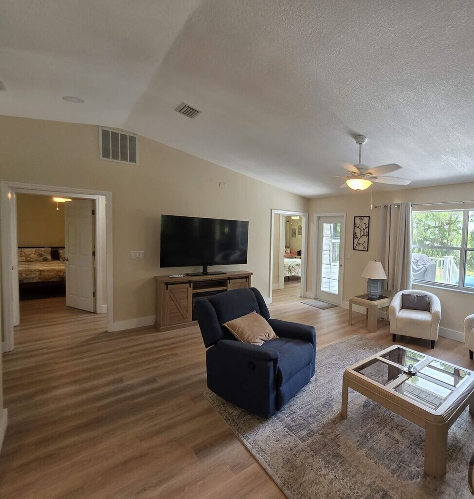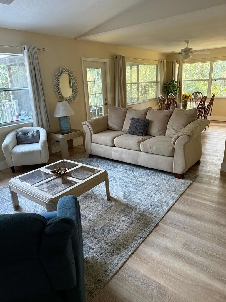 This lake house is full of leisure from the water to the rails to trails bike/hiking path, spacious and nestled into a very private area off of Lake Tsala Apopka-but close to downtown Inverness for shopping, dining, and night life-not far from Ocala, Brooksville, and Interstate 75 is only 10 minutes away. Featuring 3 bedrooms and 2 full bathrooms, sleeps 8 people, a huge outdoor deck for entertaining or dinner, and is incredibly close to the ramps for boat launching! The firepit out back brings that country life style to a reality with comfy chairs made for relaxing, or getting ready to roast smores and make some memories! If you are interested in the availability of this rental, feel free to message me for a link and open dates (as they wont last long)!