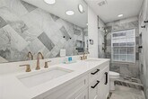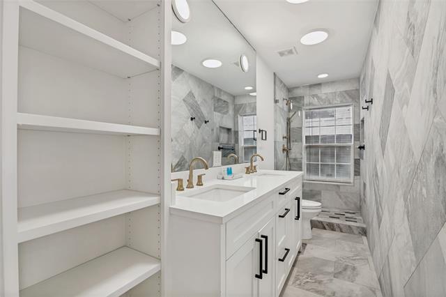 HOME CAN BE LEASED UNFURNISHED OR FURNISHED. This jewel-box bungalow is located in Little Preston Hollow, one of Dallas’ early suburban neighborhoods originally developed as three charming streets. Today the area is experiencing a building renaissance due to its prime location—just one block east of ESD and one block west of some of Dallas’ most prestigious estates. This modern home is essentially like new, featuring a reinforced foundation and durable Portland cement stucco exterior. The home was completely remodeled in 2023, including the roof and roof deck, HVAC system, plumbing, electrical, and gutters.The oversized kitchen features stainless steel Samsung appliances with a gas range, wine bar, quartz countertops, and custom cabinetry. New energy-efficient windows were installed throughout in 2023. Matte-finished Italian marble floors run throughout the main living areas and bathrooms, complemented by Level 5 museum-finish walls.The spacious primary suite includes a large walk-in closet. A Samsung washer and dryer have been installed for turnkey convenience.Additional features include a storage building located behind the detached two-car garage. Gated backyard with patio area.