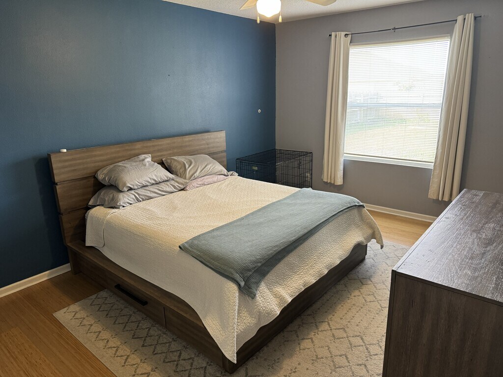 Discover this charming, Smart Home-ready single-family home located at 442 Fillmore Ave NE, Palm Bay, FL 32907. This single-story home boasts great curb appeal with an attached two-car garage and inviting landscaping. Inside, you'll find a spacious 3-bedroom, 2-bath residence with a versatile floor plan. The home features a separate, carpeted formal dining room and an enclosed office/extra bedroom with French doors, offering flexible space for your needs. The entryway and kitchen feature easy-to-clean tile, which flows into a bright, open-concept living area with bamboo flooring. Home Highlights: Open-Concept Living: The spacious living room is the heart of the home, featuring a stunning modern white shiplap fireplace with a TV mount, a ceiling fan, and large sliding glass doors that open directly to the screened-in patio. Gourmet Kitchen: The updated kitchen is a chef's delight, featuring: Beautiful granite countertops Modern, light-colored cabinetry A full suite of stainless steel appliances A large center island with a butcher block top A raised breakfast bar with seating Spacious Master Suite: The private master bedroom features a stylish blue accent wall, a ceiling fan, and laminate flooring. The en-suite bathroom is a true retreat, complete with: A long vanity with granite countertops and ample storage A large soaking tub A separate, tiled walk-in shower with a glass enclosure Stylish Secondary Bedrooms: The additional bedrooms are comfortably carpeted, with two rooms featuring unique, stylish accent walls one with a modern sage green board-and-batten design and the other with a charming floral wallpaper. Outdoor Living: Relax and entertain in the spacious screened-in patio that overlooks a large, fully fenced-in backyard perfect for privacy, pets, and recreation. Lease Details: Lease Term: 12 Months Appliances Included: Refrigerator, Range, Dishwasher, Microwave, Washer, and Dryer are all provided for tenant convenience. Pet Policy: Dogs are permitted with a $250.00 deposit per animal. Beautiful Single-Family Home for Rent in Palm Bay! Discover this charming single-family home located at 442 Fillmore Ave NE, Palm Bay, FL 32907. Available for a standard 12-month lease term, this property is perfect for an individual or small family, with a maximum occupancy of six (6) people and a strict limit of three (3) adults. Key Financial Details Monthly Rent: $1950.00 Security Deposit: $1950.00 Late Rent Policy: A late fee of $25.00 per day, up to a maximum of $125.00 per month, applies if rent is not paid in full by the 5th day of the month. Utilities: Tenant is responsible for Electric, Water, Cable, and any other utilities not specifically provided by the Landlord. Home & Property Features Appliances Included: Refrigerator, Range, Dishwasher, Microwave, Washer, and Dryer are provided for tenant convenience. Tenant is responsible for all routine maintenance (e.g., filter replacement, cleaning lint/hood filters). Landlord determines all major repairs/replacements. Lawn Care: Tenant is responsible for all lawn care and landscaping maintenance (mowing, edging, weeding, trimming, and watering). Parking: Strictly limited to operable, registered vehicles on the driveway or designated hard surfaces. Parking on the lawn is prohibited. No commercial vehicles over 10,000 lbs. or bearing commercial markings. Vehicle maintenance is prohibited on the premises. Important Policies & Requirements Pets: Dogs are permitted per the attached Pet Addendum, which requires a $250.00 deposit per animal. Renter's Insurance: Required. Tenant must maintain a Renter's Insurance Policy throughout the lease term with a minimum of $100,000 personal liability coverage. Repairs & Maintenance: Tenant is responsible for routine upkeep (light bulbs, A/C filters, minor clogs). For non-emergency, non-essential repairs, a $50 deductible may apply after the first service call in any 60-day period. Landlord handles major, habitability-related repairs. Please Note: All applicants must complete a rental application and screening. A full copy of the Residential Lease Agreement, along with the General, Pet, and Mold Addenda, will be provided for review and signature. This summary is for informational purposes- the signed Lease and Addenda govern the tenancy.