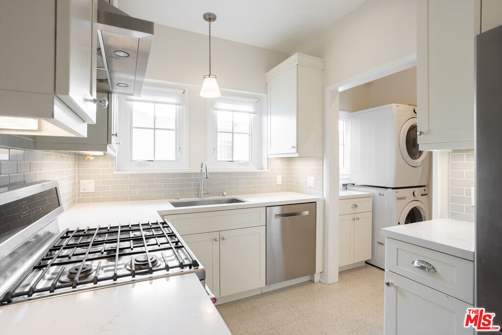 Step into timeless elegance in this fabulously restored 1930s French Normandystyle Beverly Hills four-plex. This sun-filled upper front 2-bedroom, 1-bath residence seamlessly blends historic charm with modern luxury.Spanning approximately 1,250 square feet, the apartment has been fully upgraded from top to bottom, including new plumbing, electrical, and data systems. Enjoy a brand-new kitchen and bathroom, high ceilings, and exquisite architectural details throughout. Six spacious closets provide exceptional storage.The home features brand-new casement windows, bathing every room in natural light, along with central heating and air conditioning for year-round comfort. A new in-unit washer and dryer adds everyday convenience. With both front and back private entrances, the apartment offers an added sense of privacy and flow.A single-car garage with automatic opener is included. Residents also enjoy access to a charming shared courtyard perfect for morning coffee and a shared backyard ideal for relaxing or entertaining. Ideally located within distance to Beverly Drive shops and restaurants, Pico and Olympic corridors, Westfield Century City, Rancho Park, and Roxbury Park, this exceptional residence offers classic Beverly Hills living at its finest. MLS# 26643007