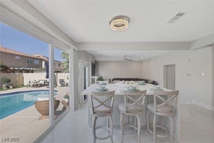 FULLY FURNISHED with Over $150,000 in high-end renovations! This beautifully remodeled two-story stunner offers the perfect balance of comfort, design, and functionality. With 6 bedrooms, 3 full bathrooms, 3,136 sq ft of interior living, an exterior, you are met with a three-car garage. Inside, enjoy tall ceilings, large windows, beautiful flooring, modern finishes, and an open concept floor plan with incredible natural light! The chef’s kitchen is a showpiece, featuring 2 quartz islands, shaker cabinetry, stainless steel appliances water filter system. The primary suite includes a separate walk-in shower and tub, a resort-style backyard with a Large Sparkling swimming pool, perfect for outdoor entertaining! Above Ground Soa and Plantation Shutters Throughout