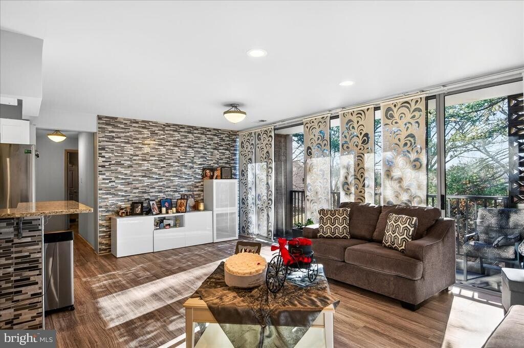 ***Completely remodeled & in pristine condition 2 BR & 1.5 Bath Condo in Briarwood Courts, in the heart of Annandale***Wonderful building with elevators & an additional storage space in the lower level. Secure building with key fob entry. Lots of visitor parking. Gorgeous, light grey luxury vinyl plank flooring throughout. Stunning kitchen that was completely remodeled & opened up to include a breakfast bar, premium granite countertops, white, flat panel cabinetry, stainless steel appliances with gas cooktop. 2 spacious bedrooms with big closets with lots of closet organizers. Full bath with lots of modern finishes, custom tile inlay, comfort height vanity & contemporary lighting. Generous primary suite with walk-in closet & big windows let in a lot of natural light. 2nd bedroom is very spacious with ample closet space with organizers. The entire condo has been painted throughout a neutral color & there are custom blinds/shades on all of the windows & sliding glass doors. Big sliding glass doors open to a long covered balcony with a lovely view of the trees & community.