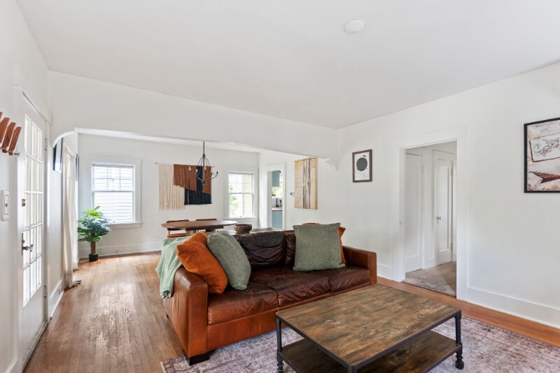 Property Id: 2207660 Calendar may not be up to date. Message for availability. Fully Furnished The main floor consists of 2 queen bedrooms, one full bathroom with shower tub, fully outfitted chefs kitchen, spacious living / TV / dining area with tons of natural light, a fireplace plus a private office space leading to a well landscaped backyard. Full glass french doors off the living area open to a large front porch perfect for enjoying your morning cup of Stumptwn Coffee while watching the hustle and bustle of Portlanders passing by. A second floor stairway off the living area transports you to the sickest of kid/teen hangout lofts equipped with TV, boardgames, beanbag chairs and a twin bed. It's also the best spot in the house for kicking it while silently staring at your phone. Private and free laundry area is located in the basement. Cozy yet airy bungalow drenched in natural light with plenty of private areas to get away. Just steps away from award winning restaurants and the flag ship location of world renowned Stumptown Coffee Roasters. Enjoy the best food and the best shopping in what is arguably one of the best neighborhoods in all of Portland.