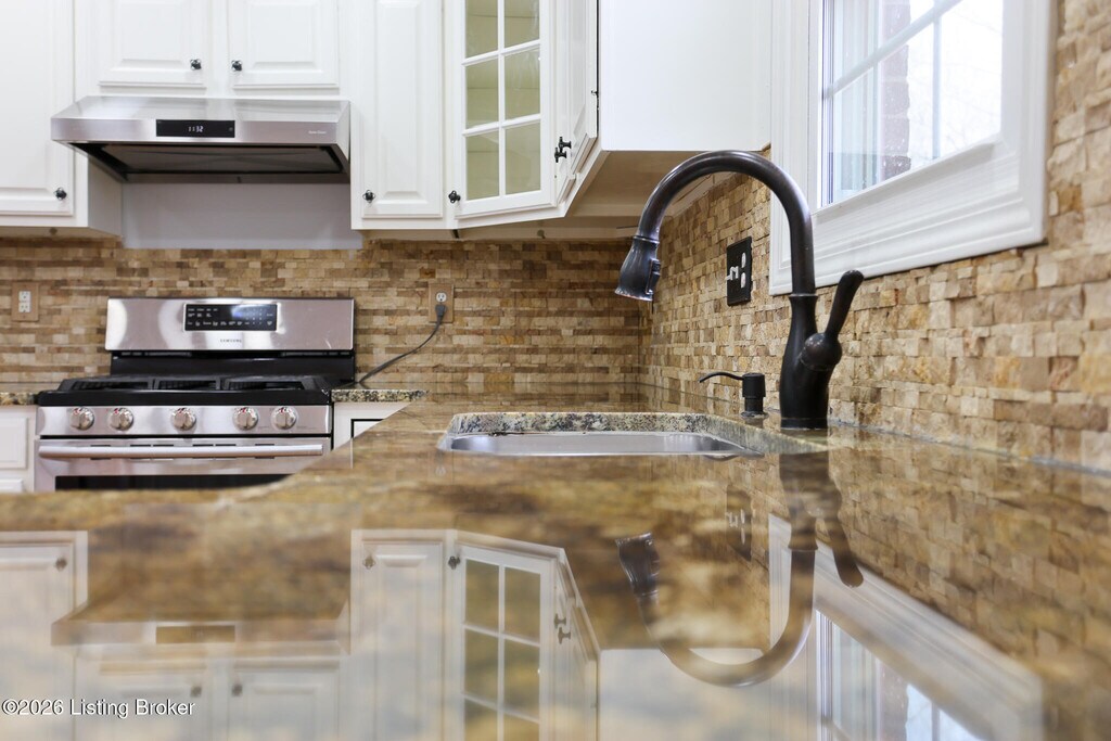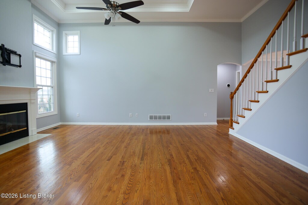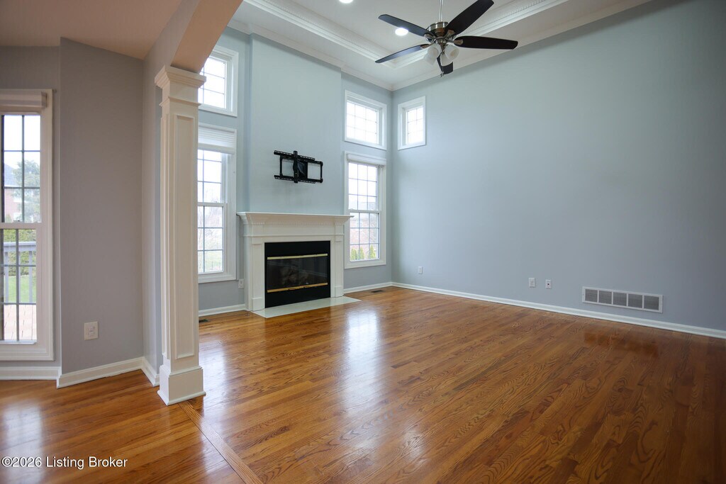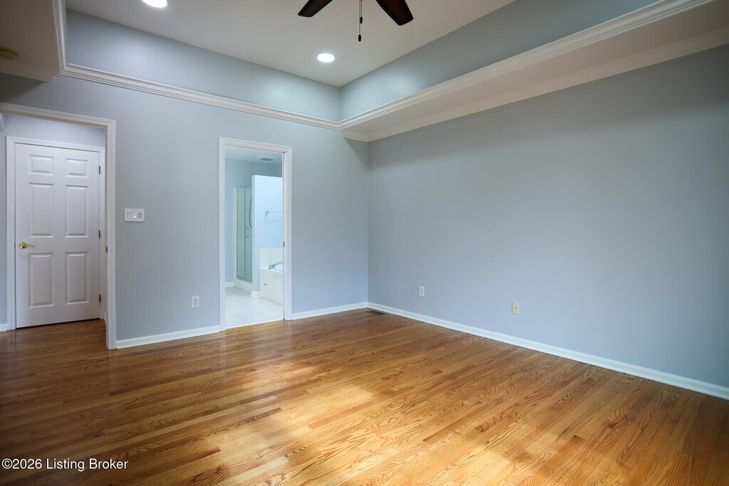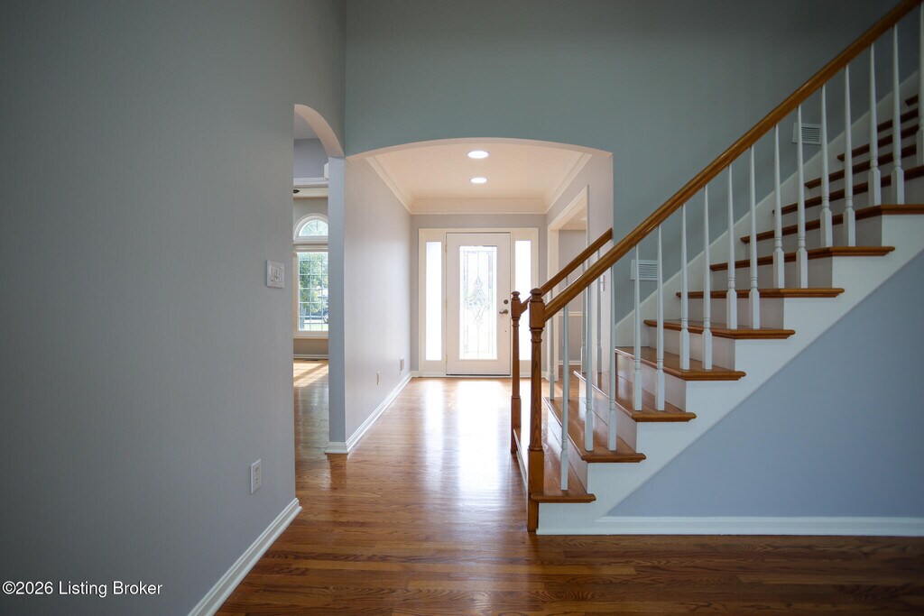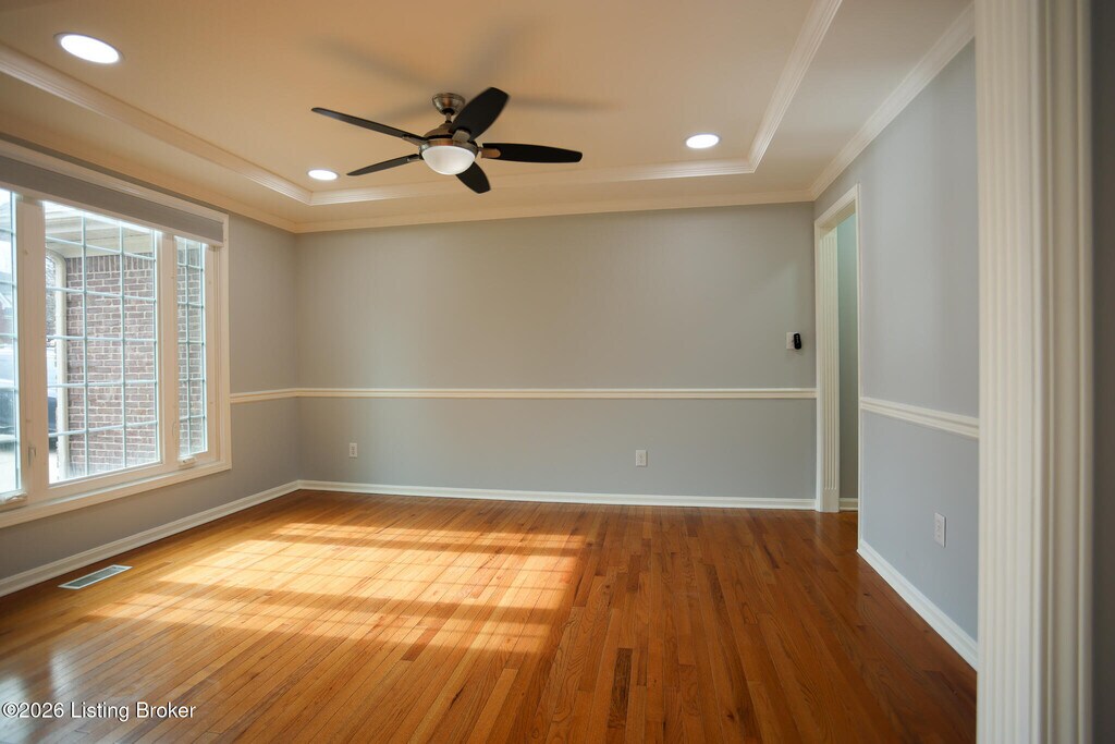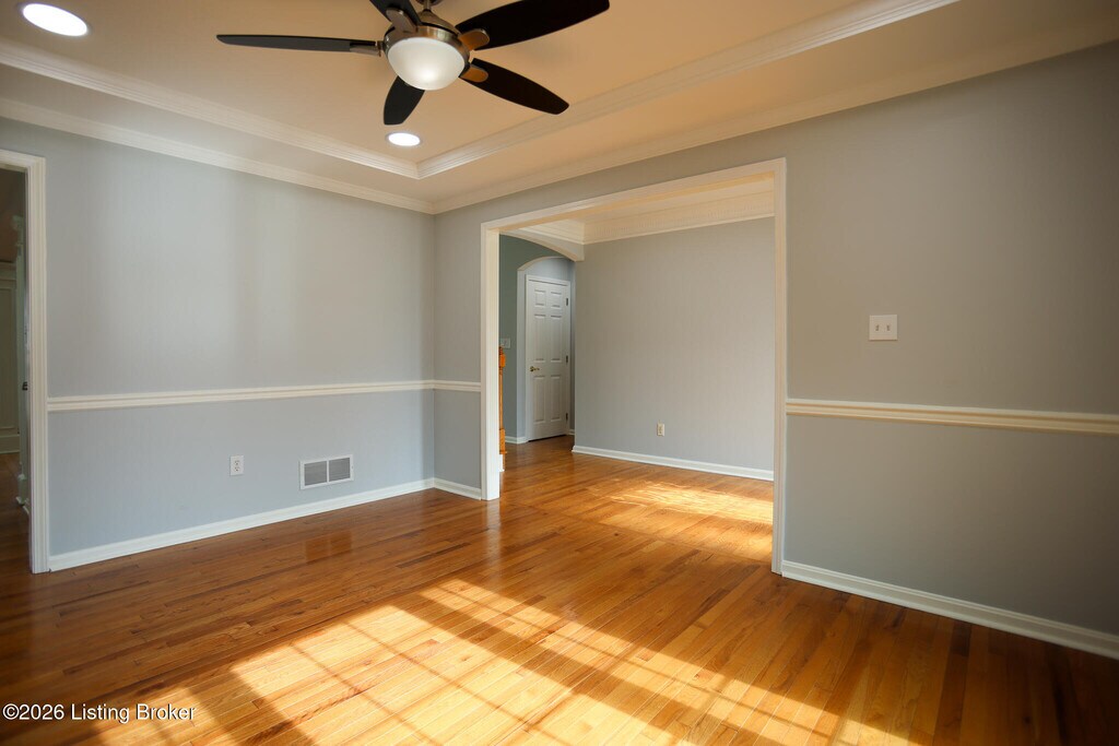 This pristine 1.5 story finished walkout is located in highly sought Forest Springs North. Just minutes from I-265,and I-71,the home is situated on a quiet cul-de-sac,on one of the largest lots in the neighborhood. This stunning 6 bedroom,3.5 bath home boasts many architectural details such as arched doorways,columns,gas fireplace,beautiful trimwork and lots of windows. The open floor plan is an entertainer's dream with a chef's style kitchen and hardwood and solid surface flooring throughout. The finished basement has tall ceilings with lots of windows,2 bedrooms,full bath,private office and includes a family room.