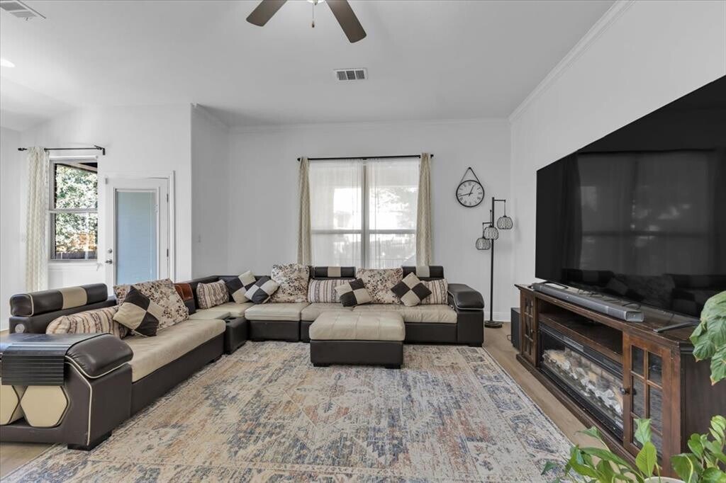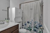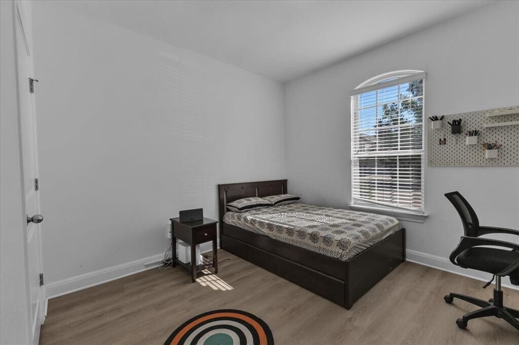 This beautifully designed single-family home offers a perfect blend of comfort and style. Located in a sought-after Leander community and zoned to Leander ISD, the home features 3 bedrooms and 2 full bathrooms on the main floor, including a primary suite with a bay window seating area and an ensuite with a soaking tub and separate shower. The entire home features new vinyl flooring with no carpet anywhere, flowing seamlessly through the open-concept living areas, formal dining room, and laundry room. The chef’s kitchen boasts a large center island, deep double-basin sink, granite countertops, and stainless steel appliances, including a recently updated gas cooktop, built-in oven, and microwave. Upstairs includes a game room, media room with a projector and a 100-inch projector screen, along with a half bathroom, perfect for family fun or entertaining guests. The oversized covered patio and spacious backyard offer plenty of room for outdoor activities, kids, or pets. Additional features include solar panels, a Reverse Osmosis water filtration system, overhead garage storage, and included refrigerator, washer, and dryer. This home offers modern functionality with thoughtful details, ideal for your next rental.