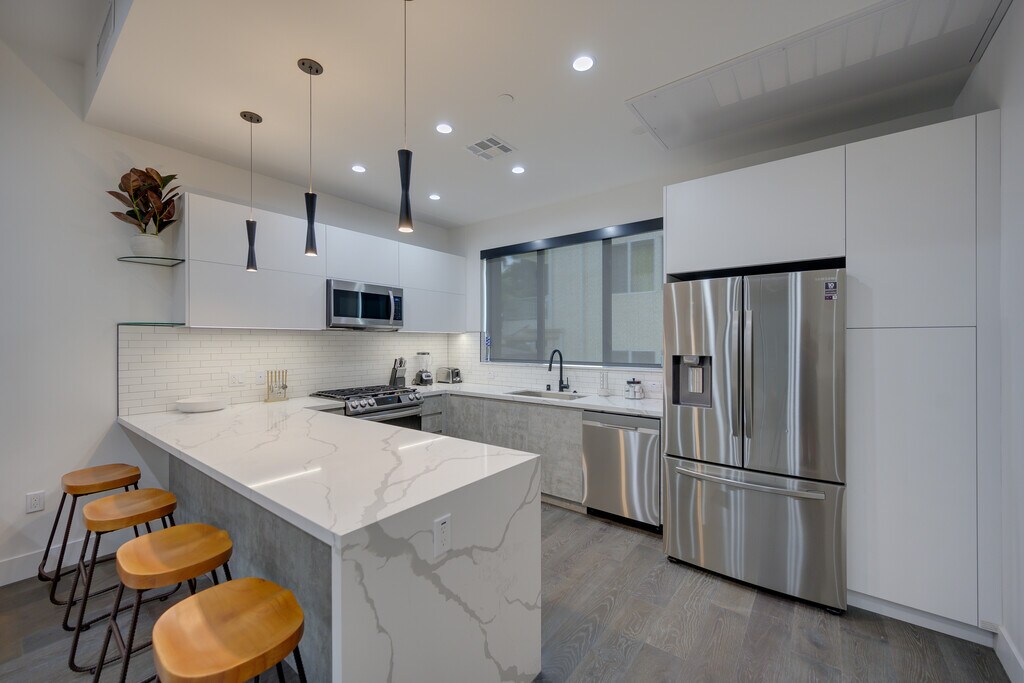 Boutique community of 5, FREE-STANDING (no shared walls) small-lot subdivision homes. Home number 4 out of 5. This tri-level home offers 3 beds, 3 baths, measuring approximately 1,822 SF. Soaring ceilings, stunning finishes, flawless craftsmanship & execution. Exceptionally bright and beautifully appointed with white oak hardwood floors, high-end finishes throughout, custom cabinetry, window coverings closets & built-ins, stainless steel appliances, in-home laundry and central heating & air, zoned on every floor, incredible rooftop deck featuring retractable pergola and privacy shade, stunning views of the entire city. Private 2-car garage with direct entry into your home. Modern design, sophistication, quality and elegance, all at an affordable price. PRIME MAR VISTA / DEL REY / MARINA DEL REY, CLOSE TO SILICON BEACH! Available late October. Rental Terms: Annual: $5,995 Per Month