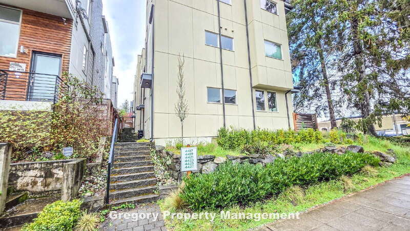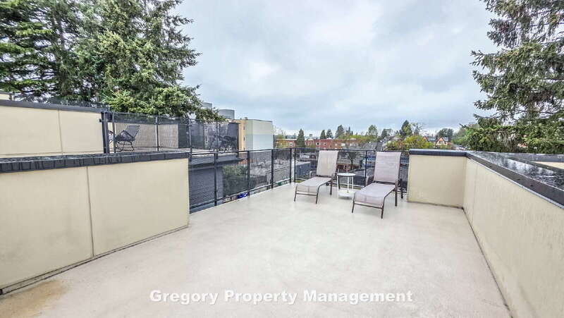 Excellent location in the heart of Wallingford. This contemporary townhome offers a sophisticated living experience with high-end finishes and a thoughtful layout. Just blocks away from the popular shops, cafes, and restaurants on 45th St, and a short distance to Gas Works Park and the Burke-Gilman Trail. The main floor features an open-concept living area with beautiful hardwood floors and large windows that provide plenty of natural light. The gourmet kitchen is equipped with premium stainless-steel appliances, quartz countertops, and sleek custom cabinetry. Unique Layout has bedrooms located on separate floors for maximum privacy. The top floor features a master suite, while the second floor includes a second bedroom and full bathroom. Stay comfortable year-round with A/C and heat featuring separate controls for every room. Washer and Dryer included The expansive rooftop deck offers stunning views of the Seattle skyline and surrounding neighborhood—ideal for entertaining or relaxing. Energy-efficient construction and modern systems ensure year-round comfort. Walking distance to local favorites like Dick’s Drive-In and Molly Moon’s Ice Cream. Excellent commuting options with Bus Stops for routes 44 and 62 right outside the property. Reach the U-District Station and UW in just 10 minutes by bus or take a quick 5-minute drive to UW, Fremont, or Green Lake. Easy access to I-5, Hwy 99 Small pets considered Street Parking ONLY - Free Presented by Gregory Property Management. We do not accept Zillow applications. **To Schedule a viewing ** Call our 24-hour SELF SHOWING HOTLINE OR visit our website and click ""Schedule a showing"" Gregory Property Management is an Equal Opportunity Housing Provider. Pet Details: small pets considered