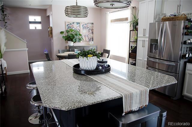 Luxury Living at Its Finest! Welcome to this stunning, upgraded home that combines comfort, elegance, and modern convenience. Featuring 3 spacious bedrooms and 3 beautifully updated bathrooms, this home offers the perfect layout for both everyday living and entertaining. Step inside to find an open-concept main floor with a large family room and a bright, eat-in kitchen—ideal for hosting guests or enjoying quality time with family. The kitchen is a true showstopper, boasting granite countertops, a crushed granite sink, engineered hardwood flooring, and custom wood accents throughout. Head outside to relax on the cozy sitting area, or step down to your private, stamped concrete patio and backyard—perfect for outdoor dining or unwinding in style. Every detail in this home has been thoughtfully updated, including: Brand new carpet on the stairs, Stone flooring in select areas, Recently painted interior, Garden beds, Two maintenance-free decks, Newly replaced stairs leading to the backyard, Smart sprinkler system, Ring doorbell, Wired for surround sound and a projector in the lower level, Turf in the backyard This home truly reflects pride of ownership and is ready for you to move in and enjoy. Single Family Residence MLS# 3411623